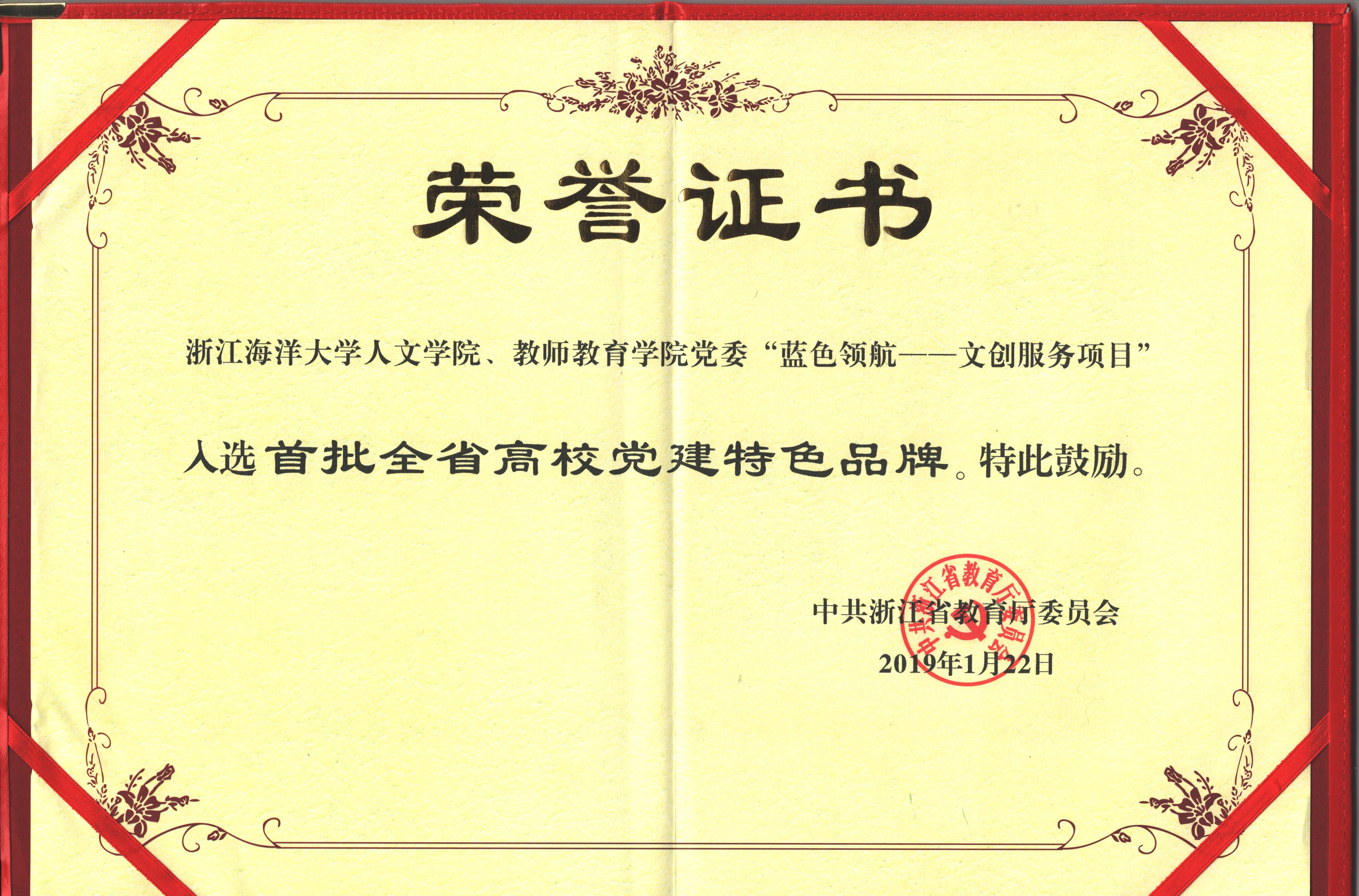 2019年以来,学院党政纪三套班子同心同德、创新引领、共促发展,加强标杆院系建设,党建工作榜样和项目荣誉纷至沓来。学院党委2019年1月荣获“蓝色领航、文创服务”首批浙江省高校党建特色品牌,2019年10月获批首批浙江省高校党建工作“标杆院系”培育创建单位。胡世文老师2019年7月获评浙江省高校优秀共产党员,曹虹老师2021年7月获评浙江省高校优秀党务工作者,沈慧君老师2021年12月获评国家教育部关心下一代工作委员会先进个人。累计获评省校级榜样建设项目7个,荣获部省校级先进集体与个人13人次。