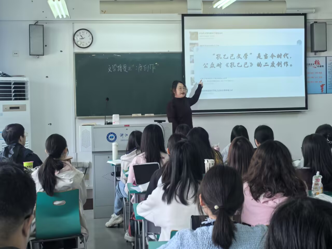 4月16日上午,yl9193永利集团“从二度创作看当代知识青年发展困境”主题公开课在定海校区东482教室开讲。学院副院长孔云、教发分中心主任伍大福及督导委员、教师代表现场观摩,师生共同聚焦“孔乙己文学”现象,展开思想碰撞。