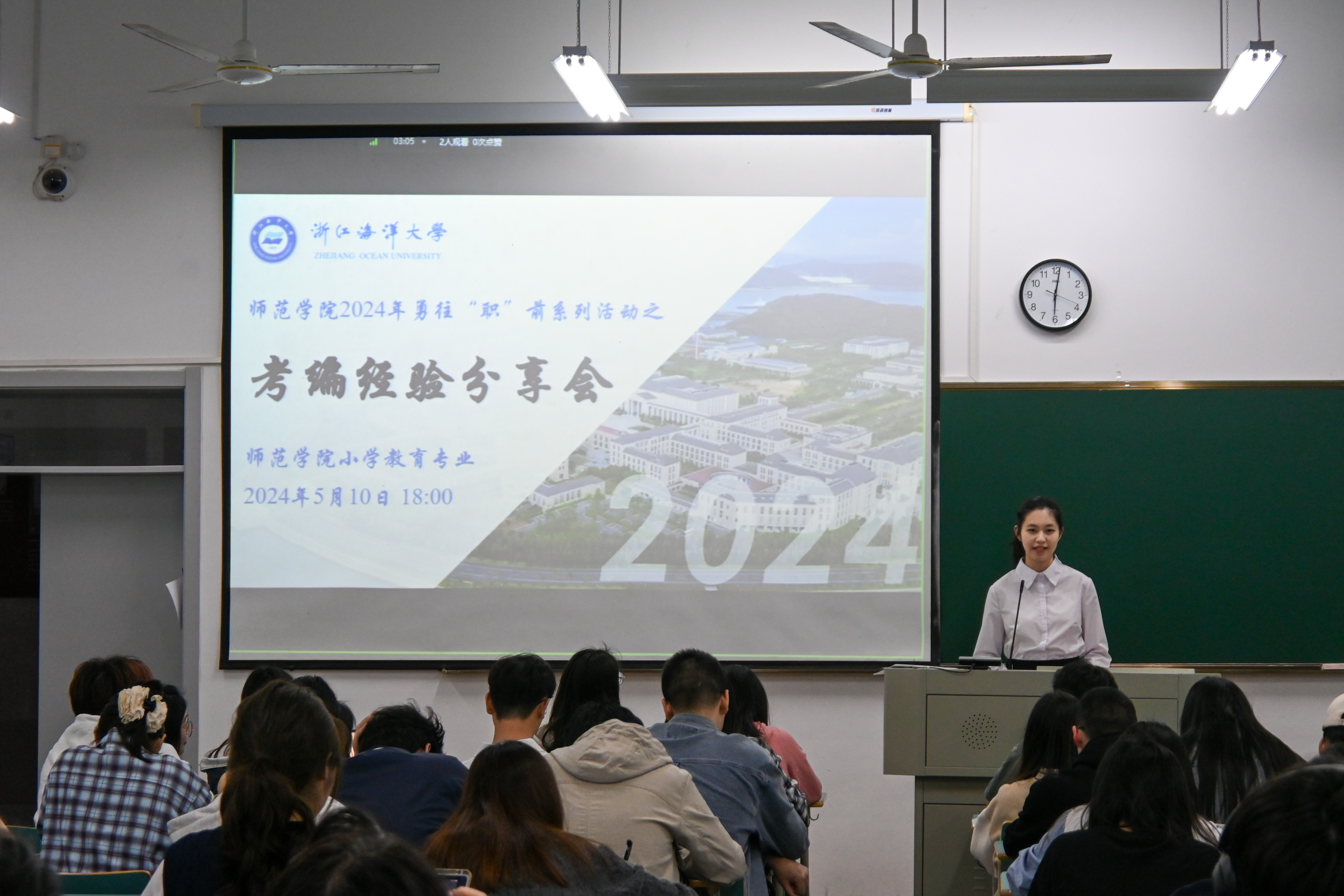 行远自迩,以梦为归。为帮助yl9193永利集团小学教育专业学生了解考编流程,积累备考经验,明确未来考试方向,2024年5月10日晚,yl9193永利集团于新城校区新教学楼B102举行小学教育专业考编经验分享会。B20小教1孔旻昊(上岸杭州市奥体实验小学)、B20小教1夏源露(上岸杭州市萧山区教育局)、B20小教1林晨晨(上岸温州市鹿城区教育局下属公办小学)、B20小教1林宁鹏(上岸宁波市海曙区教育局下属事业学校)、B20小教1蔡梦汝(上岸温州市瑞安市教育局)、B20小教2戴益萍(上岸绍兴市上虞区教育体育局)担任分享会主讲。