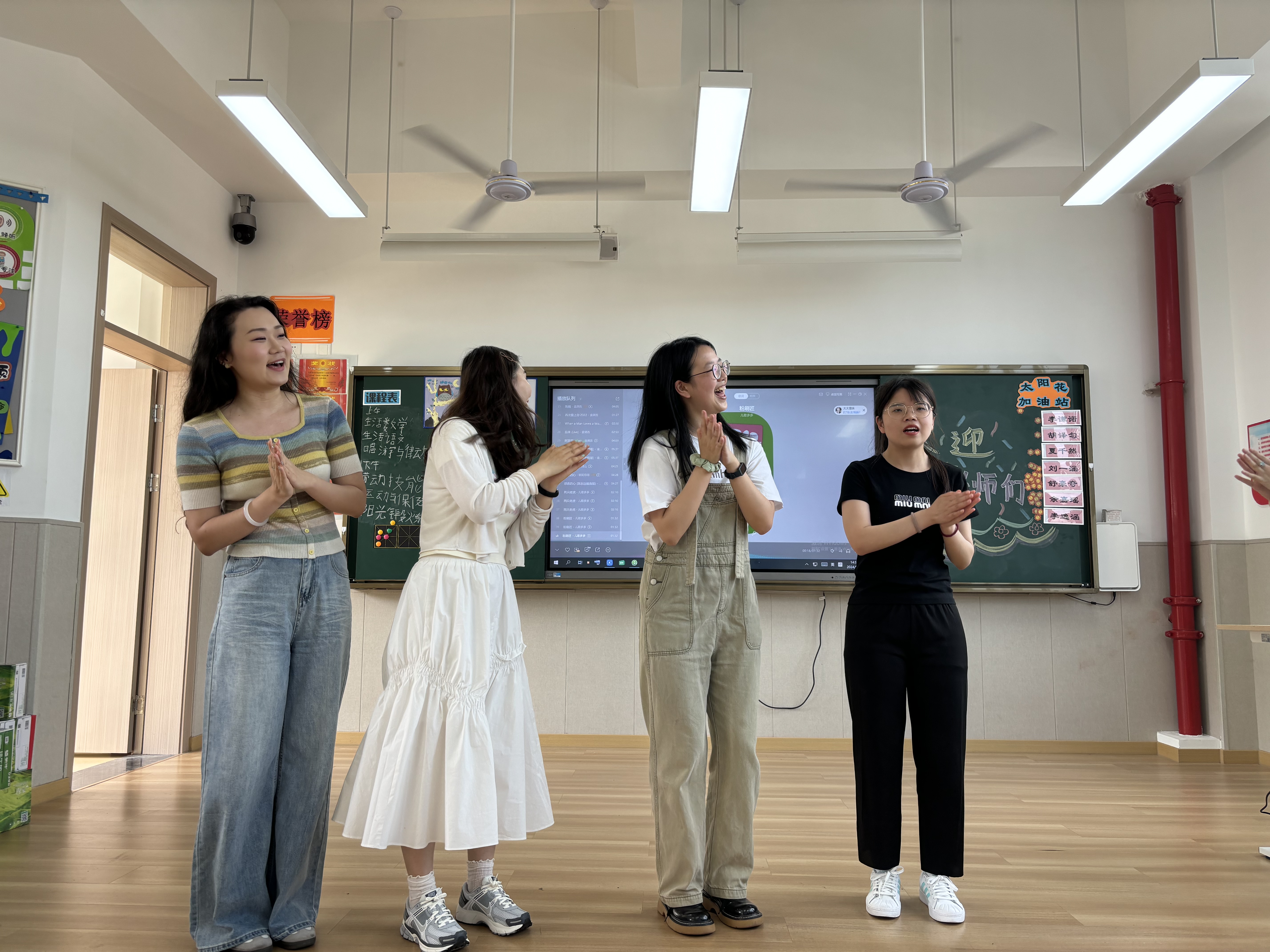 当《我爱北京天安门》既明快清新又极具生命力的旋律缓缓响起,沈书记与姚支委以饱满的激情、昂扬的精神与孩子们齐声合唱。在稚嫩的童声、沉稳的歌喉与动人的韵律中,唱响的红色儿歌逐渐走近儿童、浸润童心、融入血脉。