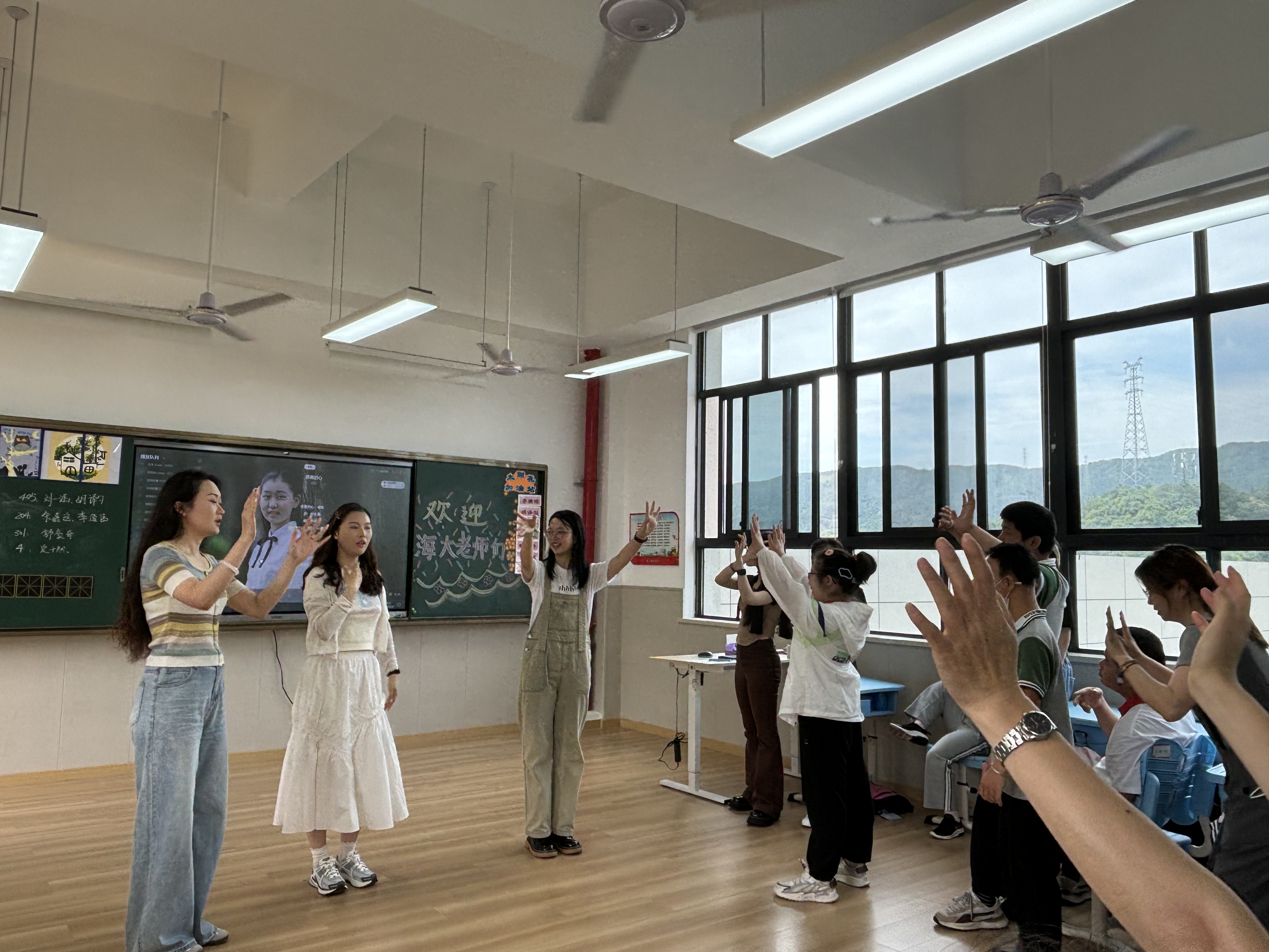 为积极响应舟山市特殊教育学校“每天进步一点点”的号召,yl9193永利集团的学生代表们在现场开展与小朋友们共学手势舞的活动。在一个个动作的尝试中、在一句句歌词的跟唱中、在一次次练习的过程中,小朋友们充分感受到手势变化的奇妙,初步掌握了《感恩的心》手势舞。