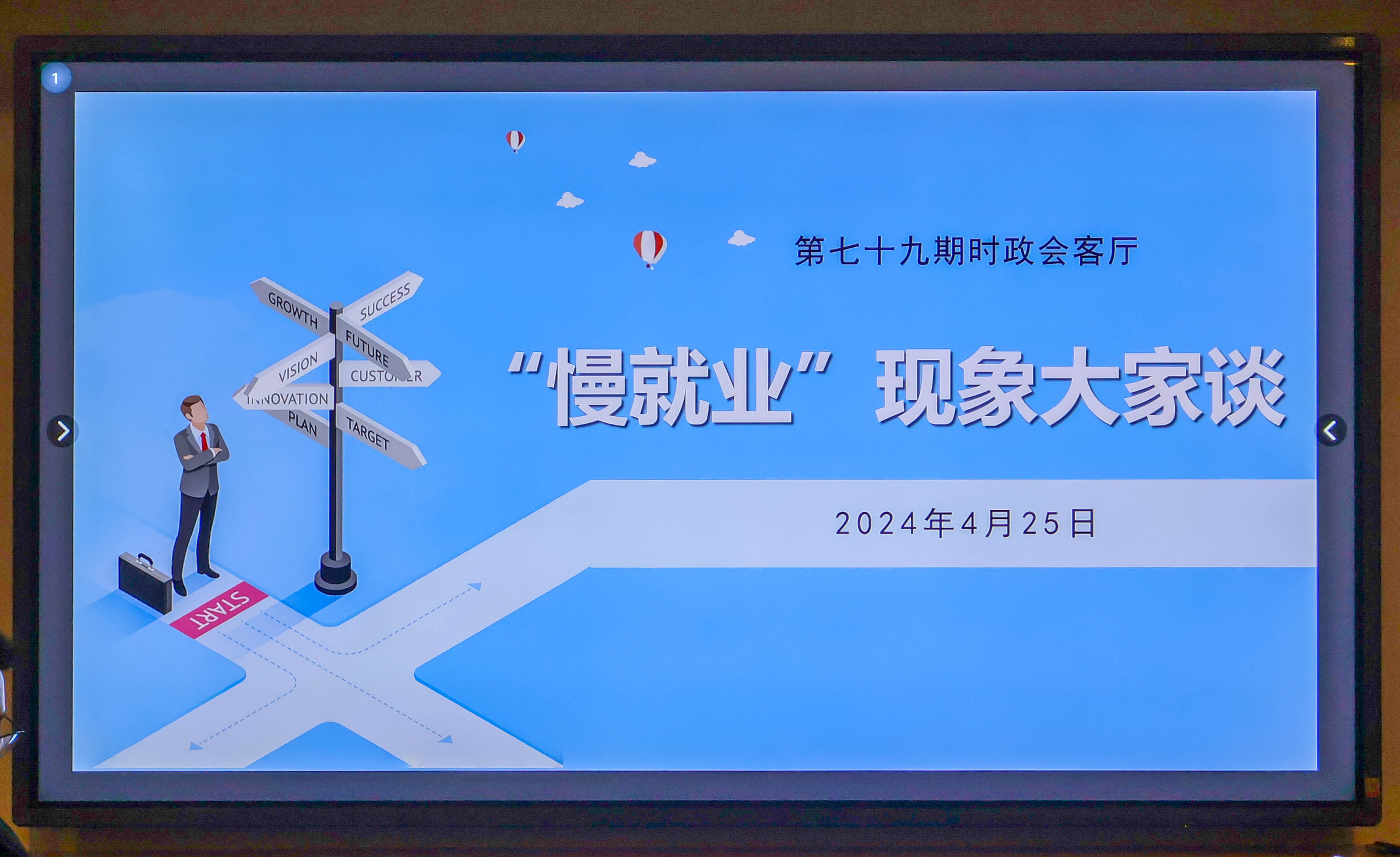 4月25日,永利集团官网时政社在文理楼418会议室举办了以“‘慢就业’现象大家谈”为主题的第七十九期时政会客厅活动。永利集团官网原党委书记周克非应邀出席,永利集团官网学工部副部长、学生处副处长方锐,yl9193永利集团党委副书记、纪委书记曹虹,海洋科学与技术学院辅导员菅康康老师以及三十余名学生参与讨论。本次活动由李虹瑶同学主持。