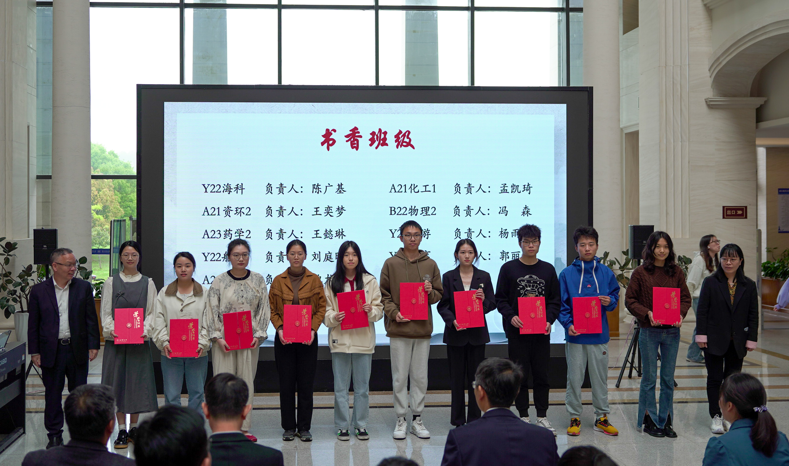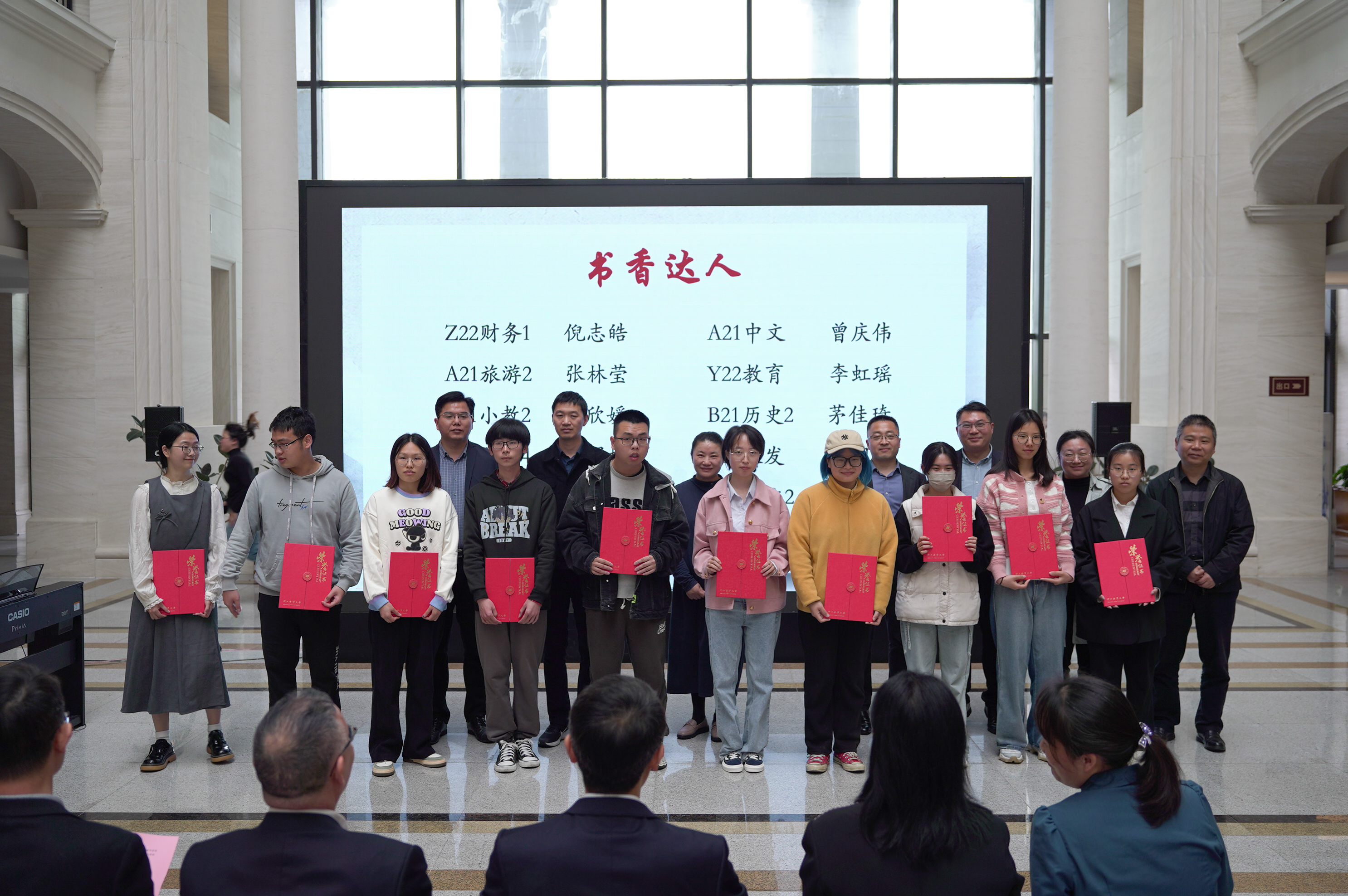 活动现场,根据前期汇总的2023年图书借阅量与各学院推荐情况,评选出“书香达人”“专业读书之星”和“书香班级”荣誉,并举行了隆重的颁奖仪式。此外,本次活动还评选出“校长读书角”优秀书评10篇,由谢永和副校长宣读获奖名单,武传宇校长进行颁奖。