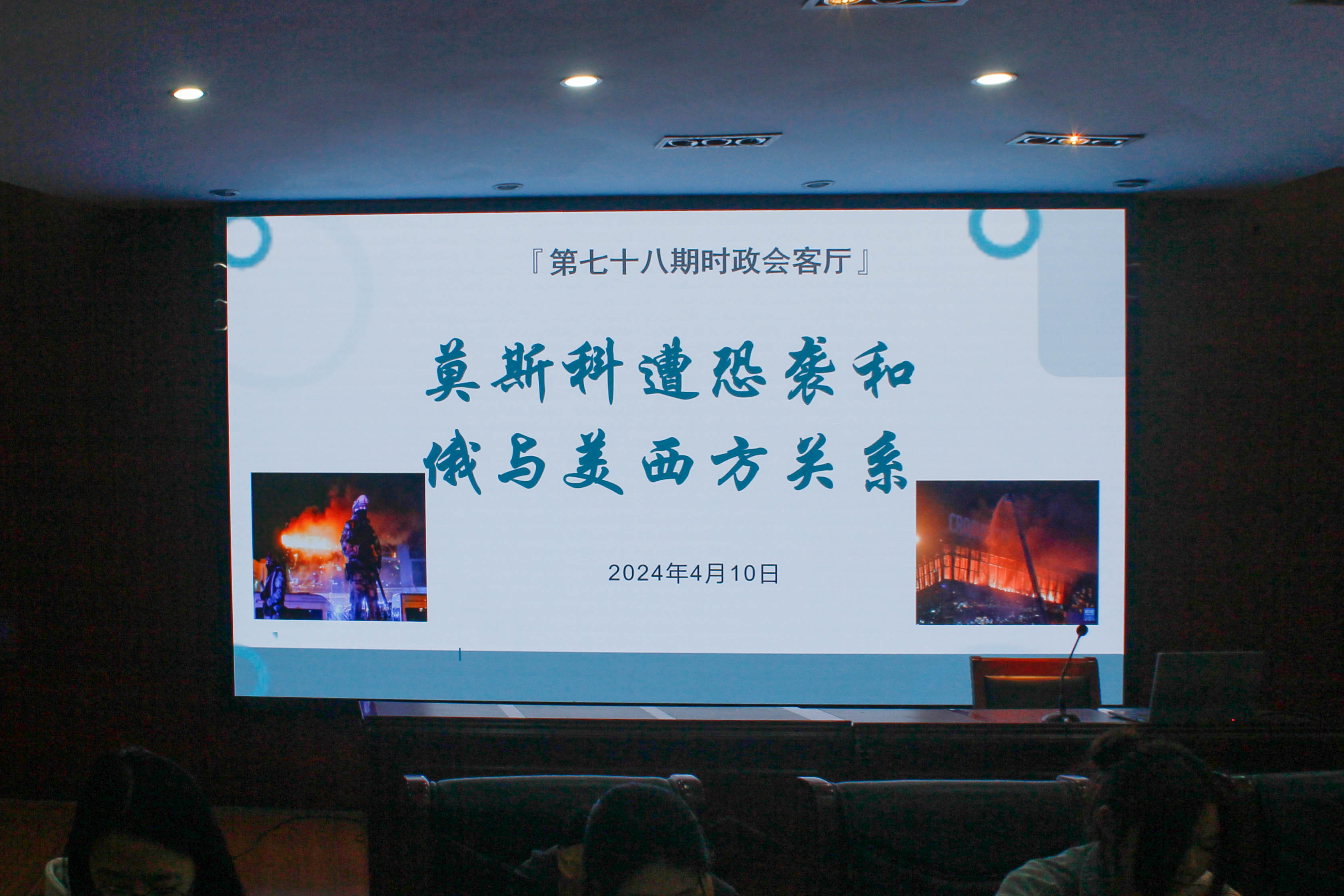 活动伊始,黄炜雅同学简要地介绍了俄罗斯莫斯科州一音乐厅遭遇恐怖袭击事件的发生背景、事件进展与相关争议,并引导同学们围绕此次事件对于俄乌冲突的影响、对俄与美西方关系的走向等方面进行思考讨论。