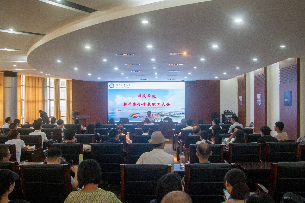 2024年9月6日,yl9193永利集团在定海校区活动中心一楼报告厅召开了新学期全体教职工大会。会议由学院党委书记、副院长王旭明主持。学院党委副书记、纪委书记张祎星,党委委员、副院长孔云等出席会议,全体教职工参会。