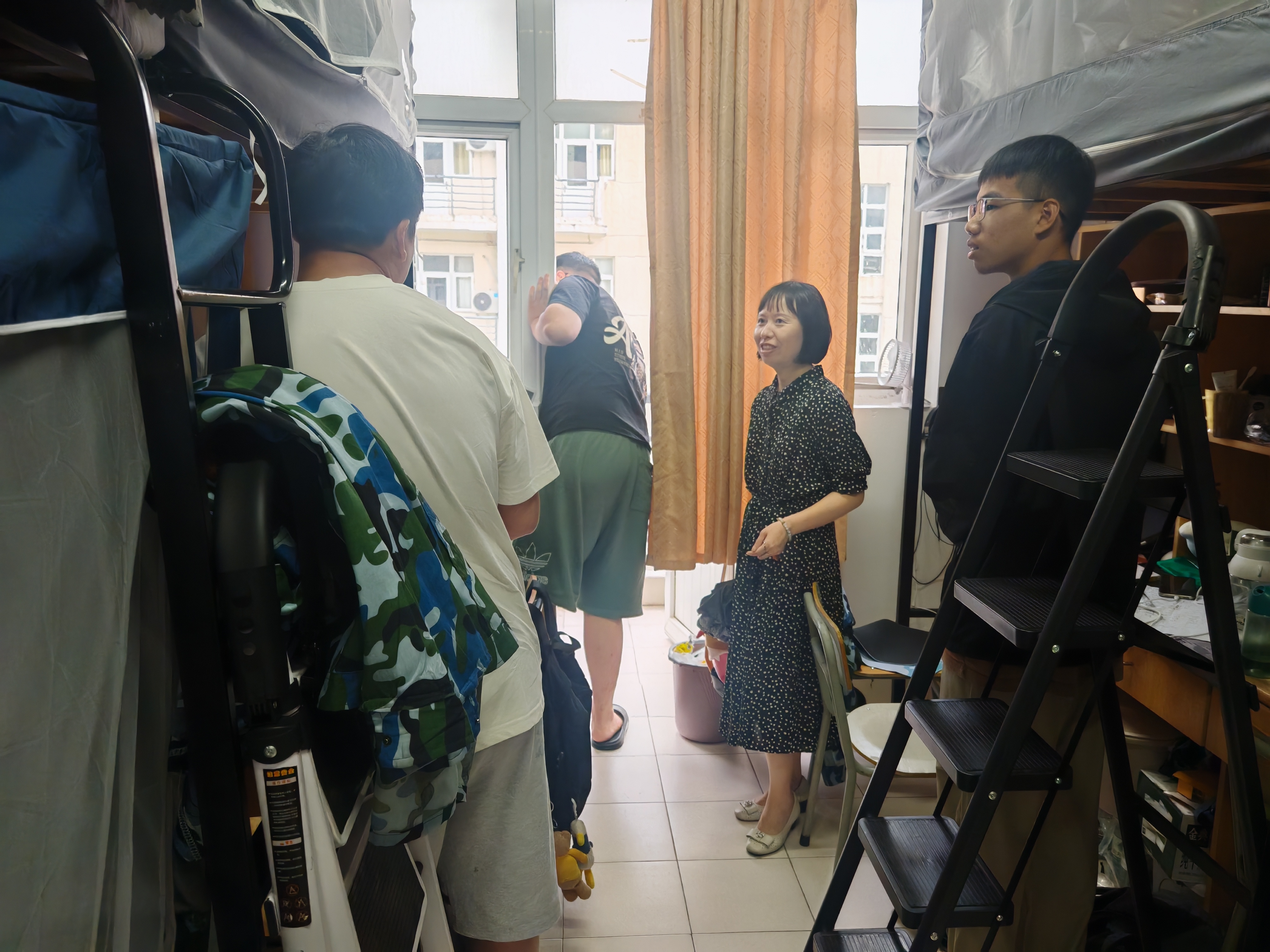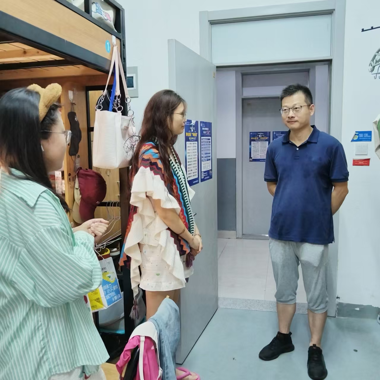 王旭明书记与张祎星书记分别带队走访了定海与新城校区的学生宿舍,和同学们亲切交流,了解他们在台风期间的困难和需求,并嘱咐同学们要在台风来临时关好门窗,及时收回衣物,尽可能减少外出,备好生活必需品。同时,对于新生,也提醒他们要按时进行军训期间要求的网络课程学习,根据要求完成各项课业内容。