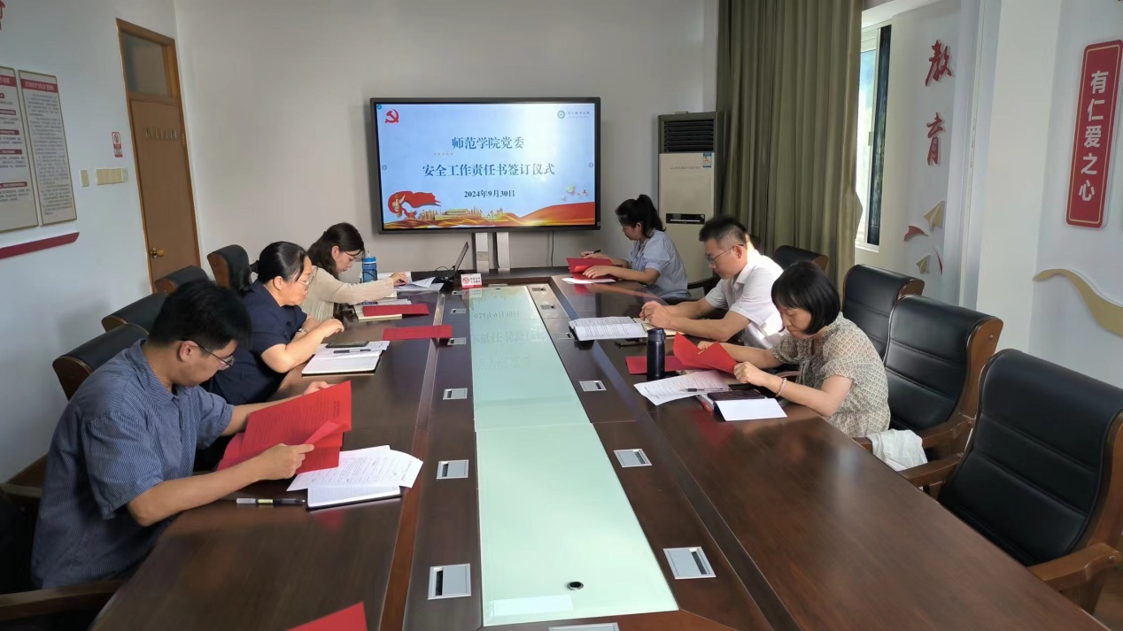 为压紧压实安全工作主体责任,共同守护学院安全稳定大局,保障yl9193永利集团全体师生人身和财产安全,为教学、科研和师生生活创造良好的秩序和环境,根据《永利集团官网平安校园建设及综合治理工作考核办法(试行)》(浙海大发〔2022〕56号)等要求,结合yl9193永利集团实际,制订了yl9193永利集团安全工作责任书。会上,王旭明书记和学院全体党政班子成员签订了责任书。