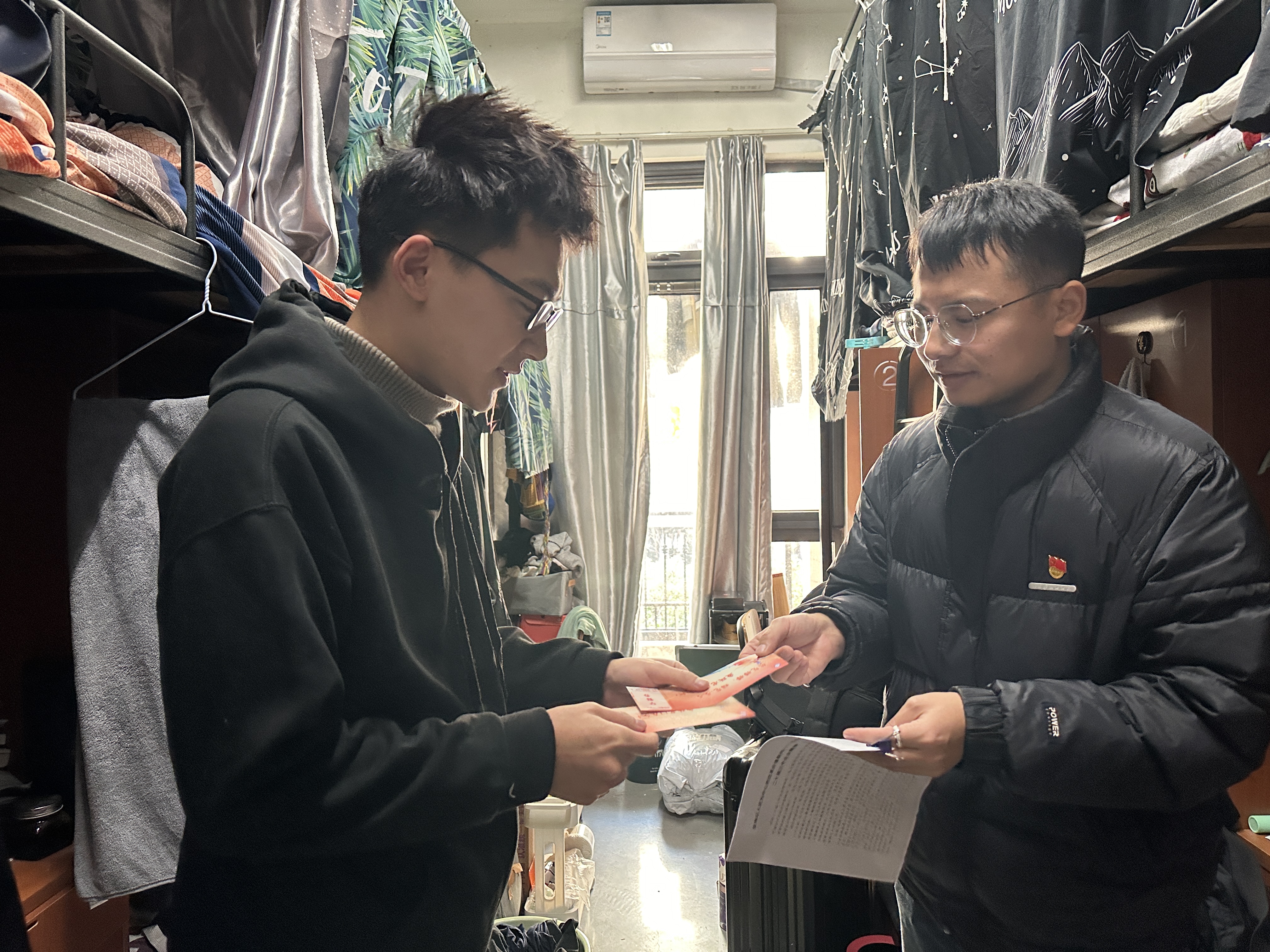 为缓解考研学子的备考压力,鼓舞考研士气,12月20日下午,yl9193永利集团深入走访寝室开展2025届考研学子慰问活动。学院辅导员杨潇航、闫兴康与相关班级班主任陪同走访,为学院面临考研冲刺阶段的学子们送上考研小礼物和来自学院诚挚的祝福。