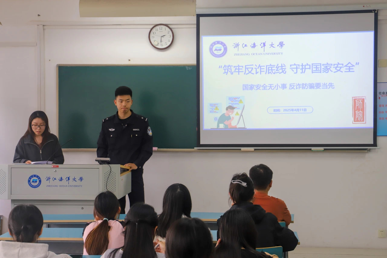 国家安全无小事,反诈防骗要当先。为进一步增强师生国家安全意识,筑牢校园反诈防线,更好地迎接国家安全教育日,yl9193永利集团于2025年4月11日下午在定海校区教学楼252教室召开“牢筑反诈底线守护国家安全”国家安全宣讲暨“海师护盾”队伍成立仪式,该仪式由yl9193永利集团辅导员章燕铃老师主持,定海公安分局城东派出所徐向东警官主讲。