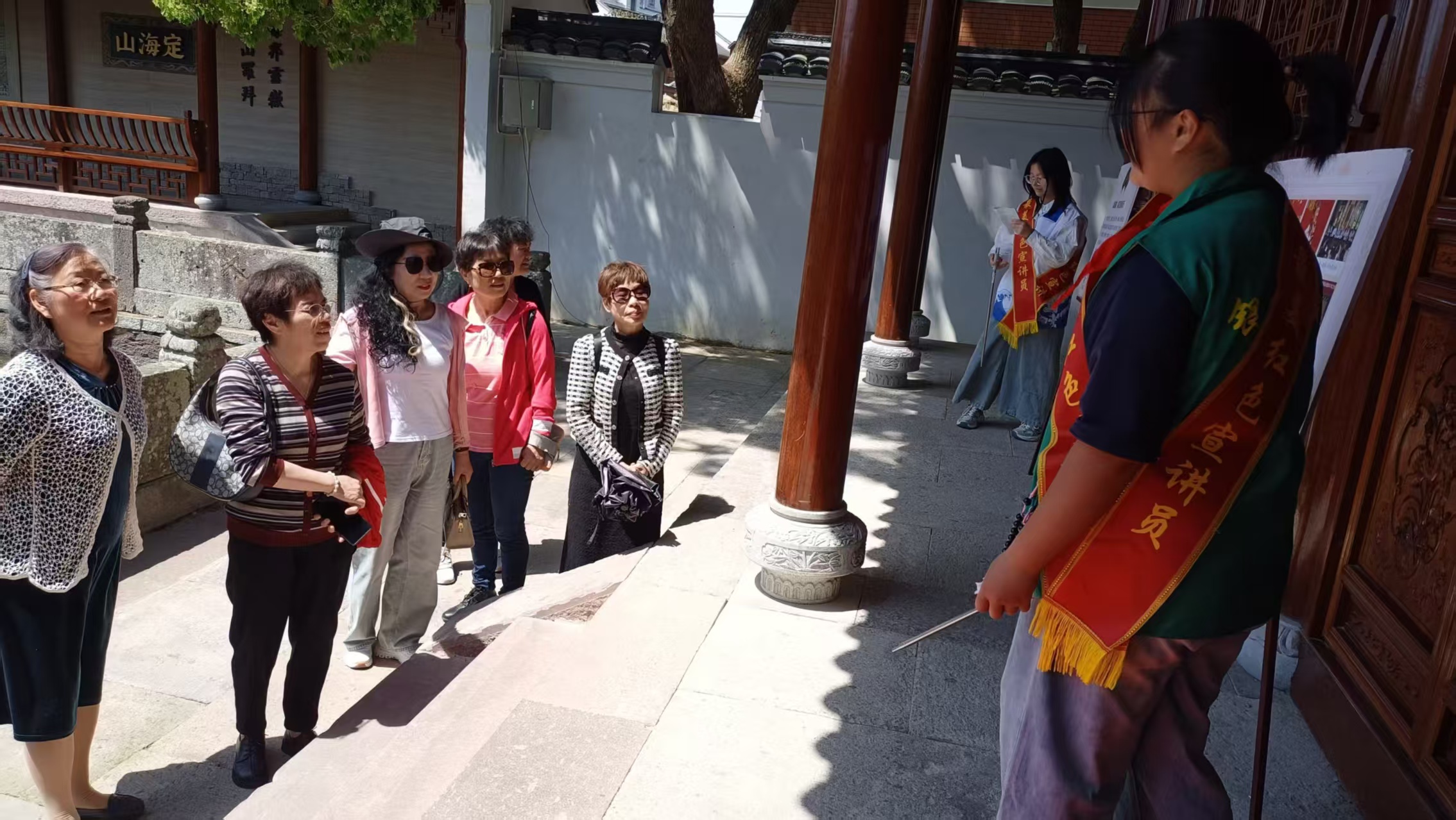 除了定点宣讲,志愿者们还化身“古城文化向导”,带领游客参观“钟书楼和翁州书院”,详细讲解建筑特色、历史故事及文化价值。在钟书楼,游客们了解到这座百年建筑作为古城文化地标的演变历程;在翁州书院,志愿者们介绍了古代书院的教育传统及其对舟山文脉的影响。不少游客表示:“这样的讲解让古城游览更有深度,不再是走马观花。”