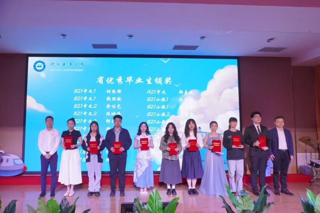 随后,主持人宣读了省优秀毕业生名单,邀请刘杨副院长和王旭明书记为同学们颁奖并合影留念。快门按下的瞬间,定格的不仅是荣誉时刻,更是大学四年奋进的时光。颁奖环节结束后,温馨的氛围在场内持续蔓延。学院为毕业生们精心准备了特别礼物与毕业蛋糕,以寄托母校对学子踏上新旅程的祝福。