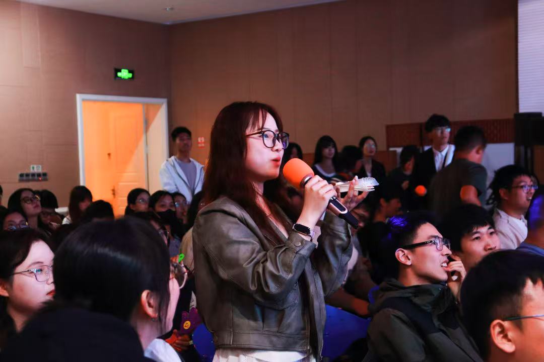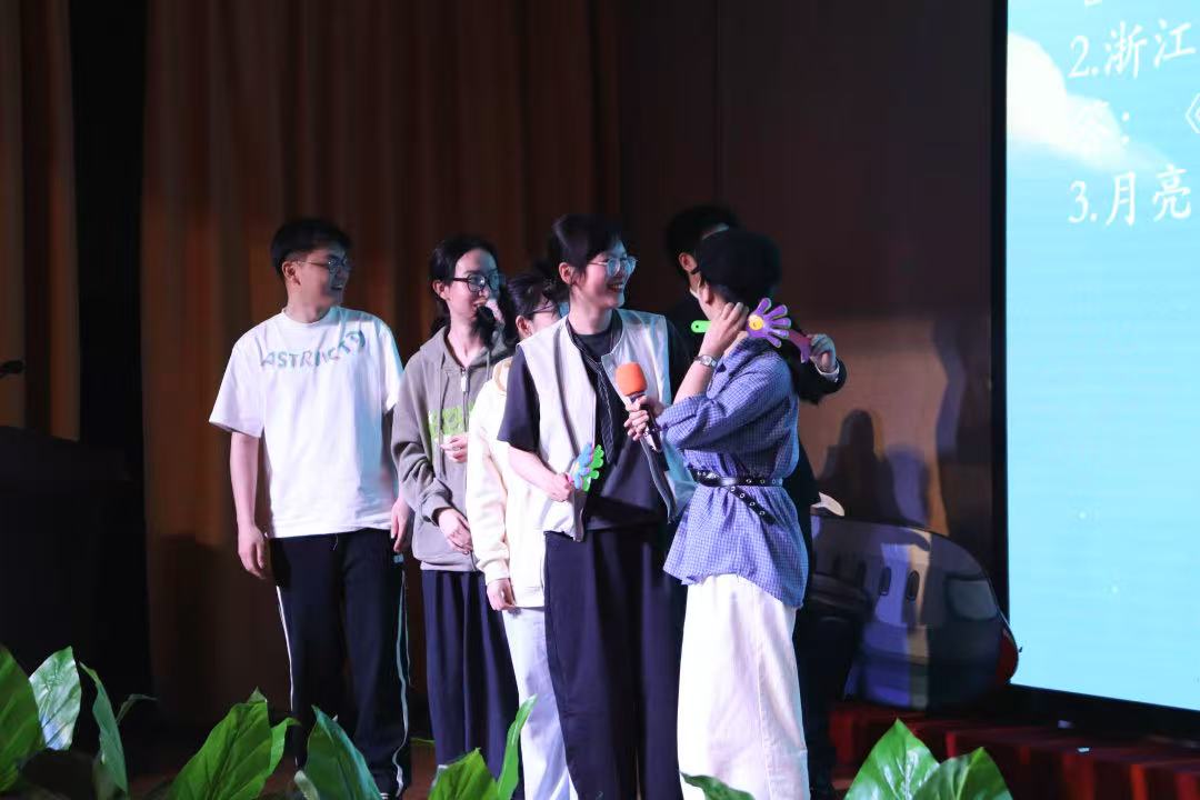晚会期间,游戏与抽奖环节也为现场注入了欢乐与惊喜。在“猜猜这在哪”游戏中,海大校园的照片唤醒了同学们的记忆,同学们紧盯屏幕踊跃抢答,答对者捧得奖品,脸上洋溢着对校园的眷恋之情。“快问快答”环节中,选手们屏息凝神应对提问,凭借默契的配合作答,获胜者击掌庆祝,开心地领走奖品。抽奖环节更是悬念迭起,幸运者或是惊喜捂嘴,或是欢呼致意,现场氛围热闹非凡。