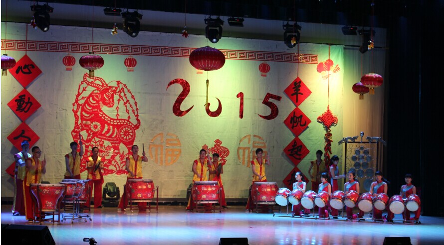 晚会还未开始,现场人员已爆满,不少观众伫足在护栏边,有的甚至坐在台阶上等待人文迎新。随着强劲的鼓声响起,晚会在我校大学生艺术团海洋锣鼓队激情的开场表演《蛟龙出水》中拉开了帷幕。随后,许金权书记致辞宣布晚会正式开始。歌曲《国家》、相声《相声都是假的》及越剧、舞蹈这些精彩的节目作为“盛世欢歌,舞乐流光”的部分,向观众呈现了丰盛的视听盛宴。诗歌朗诵《山海湖林》 吟诵了山川、湖海、竹林,谱成了一曲气势磅礴的赞歌。陶芳芝老师和傅林静老师分别用中文和日语合唱了《我只在乎你》,获得了观众热烈的掌声。由校大学生艺术团舞蹈团表演的舞蹈《蓝色航迹》表现出了海军的英勇无畏,男演员的出色表演将全场气氛带向了高潮。节目过程中三羊开泰、五福临门、八仙过海等游戏和抽奖环节无不使全场高潮迭起。最后,一首《欢乐中国年》为本场晚会画下了圆满的句号。欢乐的歌声是对大家在新的一年里最美好的祝愿。