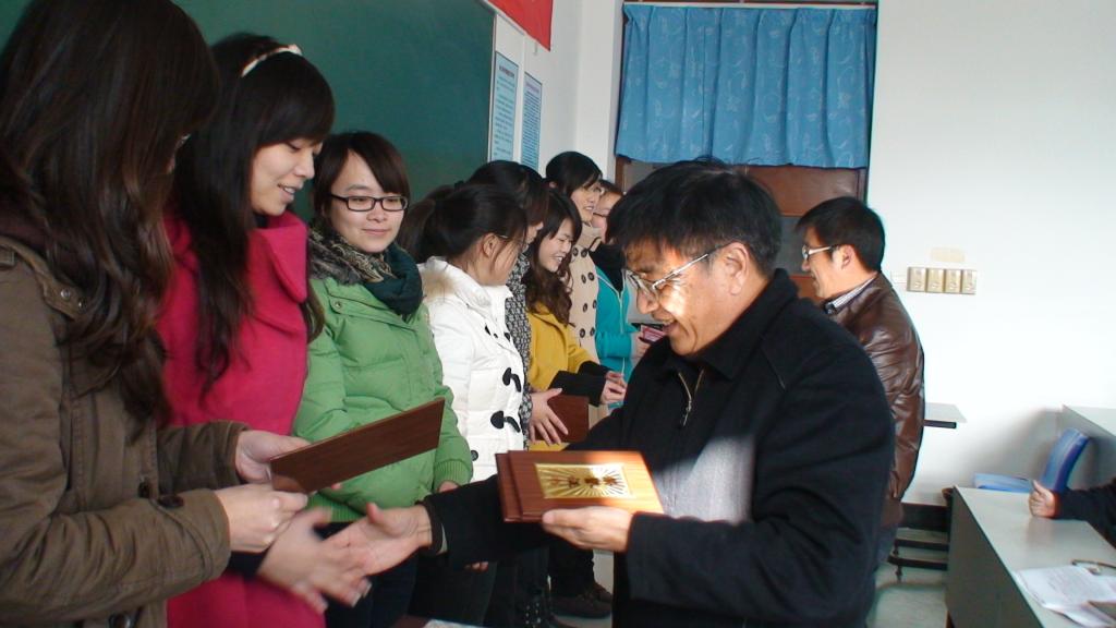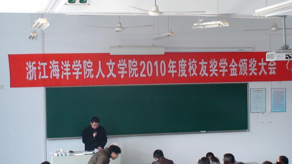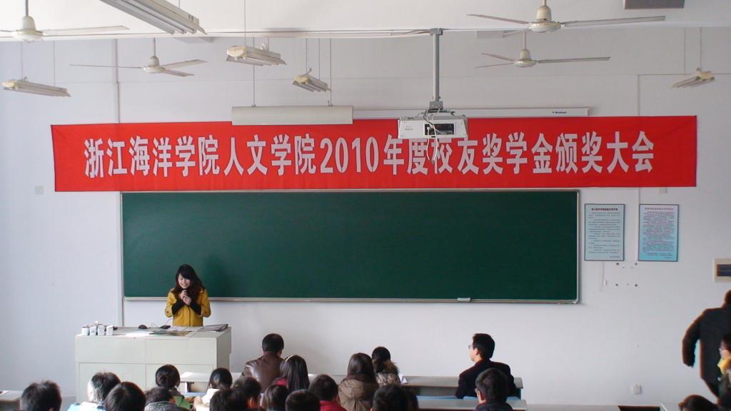 2010年12月30日上午10点,人文学院在东105教室举行2010年度校友奖学金颁奖大会。颁奖大会由人文学院副书记许金权老师主持,人文学院前任院长柳和勇教授,现任院长王颖教授、副院长杨光熙教授、副院长韩伟表教授、班主任代表、学工办老师参加了此次颁奖大会。