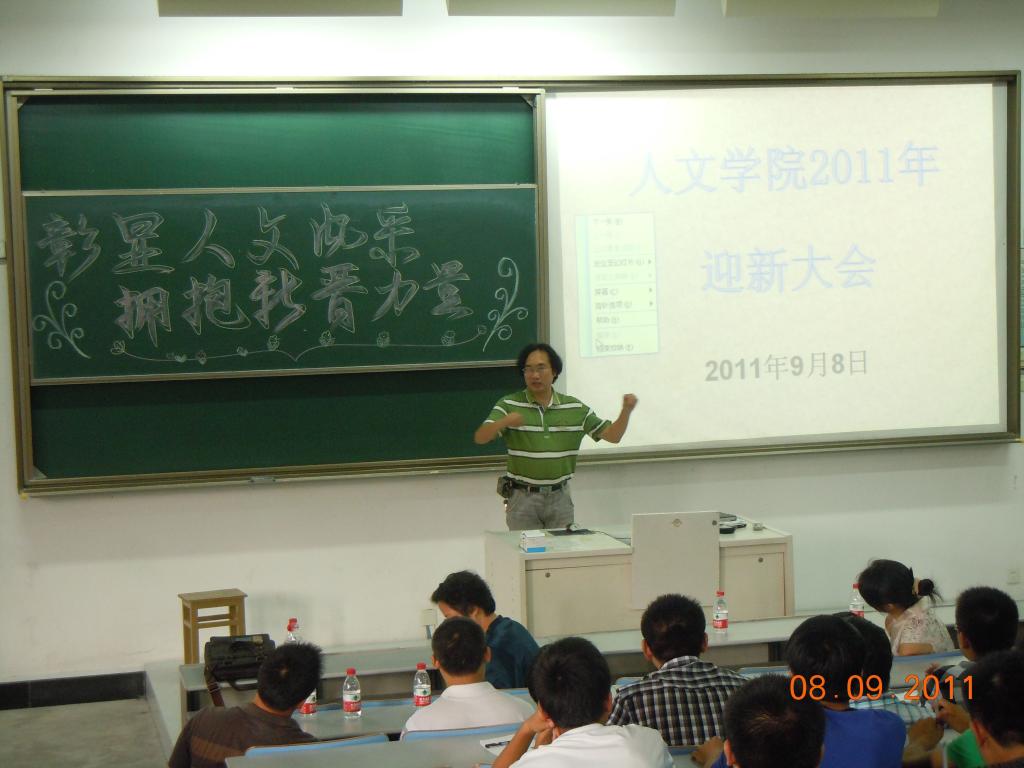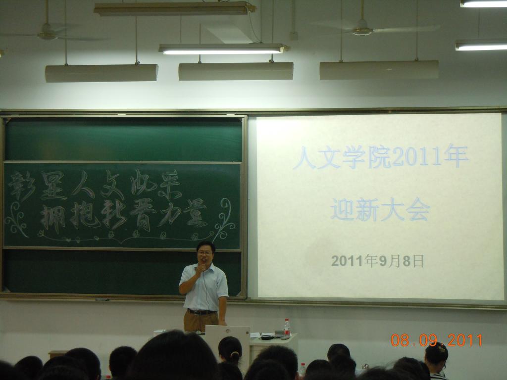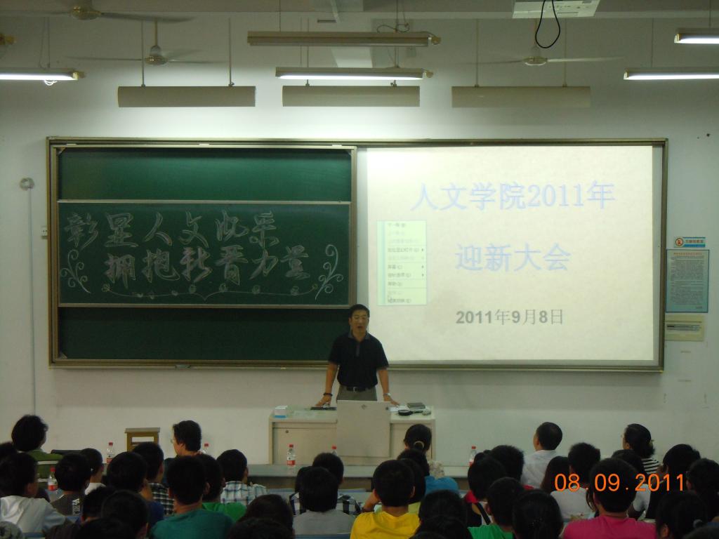 9月8日下午,人文学院2011年迎新大会在东校区134教室隆重召开,2011级新生的始业教育也正式拉开帷幕。人文学院院长兼党总支书记王颖,党总支副书记许金权,副院长杨光熙,副院长韩伟表,专任教师、新生班主任、辅导员、及全体2011级新生参加了本次大会。