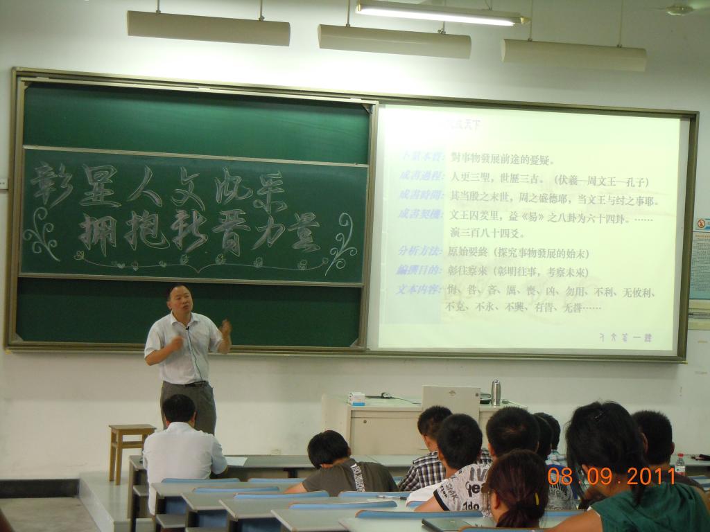 韩老师此次主讲的题目是《从传统人文经典学习为人处世》,讲座选取了传统经、子、史、集的四部经典——《周易》、《论语》、《史记》、《三国演义》,围绕“彰往察來”、“仁者愛人”、“厄而猶作”、“鞠躬盡瘁”等诸经典的核心内容,结合历史发展和当今社会现实的事例,深入浅出地阐释了忧患意识、自强理念、人本关怀和敬业精神对中华民族人文精神的生成、积淀和发展的巨大影响,并从人生目标、待人接物、职业规划、素质培养等方面讲解了这些重要思想对当代大学生为人处世的指导作用和实践价值。