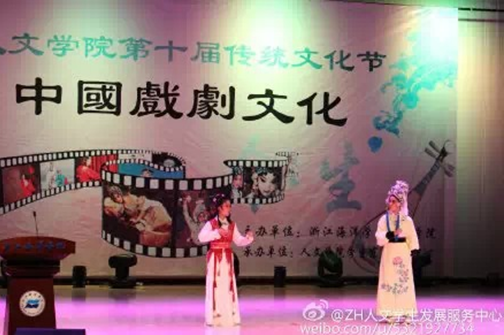 晚18:30,浙江海洋学院人文学院第十届传统文化节之中国戏剧文化开幕式在杨存国一号报告厅举行。出席此次晚会的主要嘉宾有人文学院党委书记许金权,人文学院辅导员傅林静老师。
