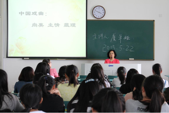 15:45,人文学院第十届传统文化节系列讲座之《中国戏剧:尚美·主情·蕴理》在教学楼304教室举行。