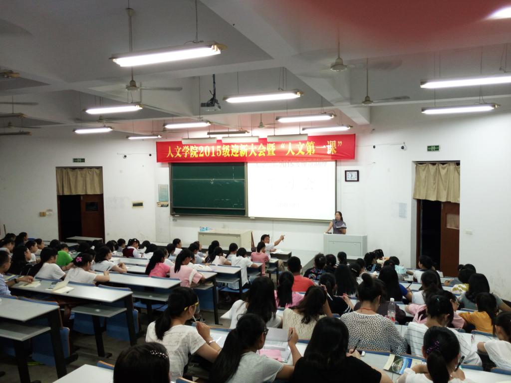 晚18:30,人文学院在定海校区130教室召开了新生规章制度学习会,人文学院党委书记许金权、辅导员朱丽芳老师、傅林静老师以及2015级新生参加了此次大会。本次学习会,旨在让2015级新生能更好地适应和了解大学生活,接受大学生活的熏陶,树立人生目标,更好地规划自己的未来。