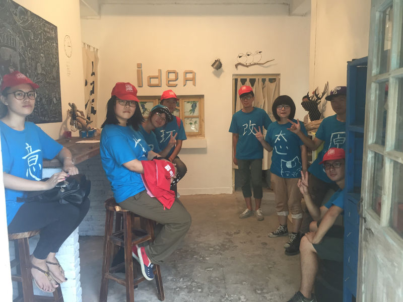 所选房子废弃很久,光修整就很花功夫。民宿改造围绕着零成本生态环保的理念,学生们只带来了在学校用剩下的颜料,更多的改造材料都是自己去寻找。古村路边有很多废弃的瓦罐、轮胎、海螺等,这些都是最棒的素材。