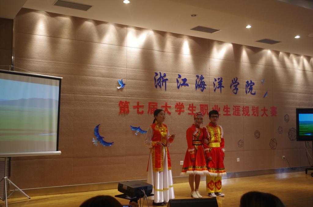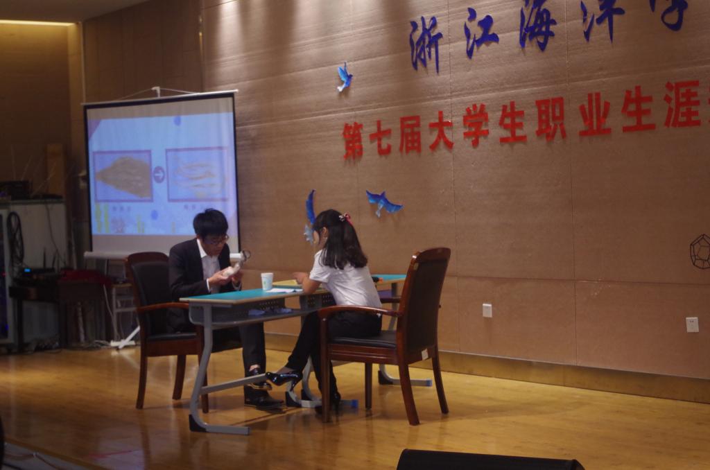 14:00,浙江海洋学院第七届大学生职业生涯规划大赛在杨存国二号报告厅顺利举行。本次大赛由校招生就业指导处主办,人文学院、校大学生就业与创业协会承办。大赛以进一步端正学生的就业态度,树立正确的就业思想,更了解自己的专业特点并发挥自己的特长,以便在未来的职业中可以获得先机为目的,邀请了舟山市就业管理服务局宋炜主任、经济与管理学院党委副书记应军、经济与管理学院副教授顾波军老师、校团委副书记王旭明及心理教育中心汪晓阳老师担任评委,并邀请了各二级学院书记、老师到场观看。