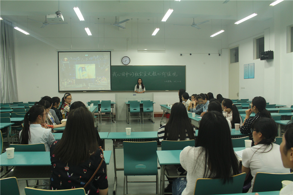 晚18时30分,人文学院“我心目中的社会主义核心价值观”读书沙龙活动在公共教学楼302举行。此次活动由人文学院学生发展服务中心语言部部长马文敏同学主持,分团委副书记王俊男同学、白婧同学及各班学生代表到场参加。