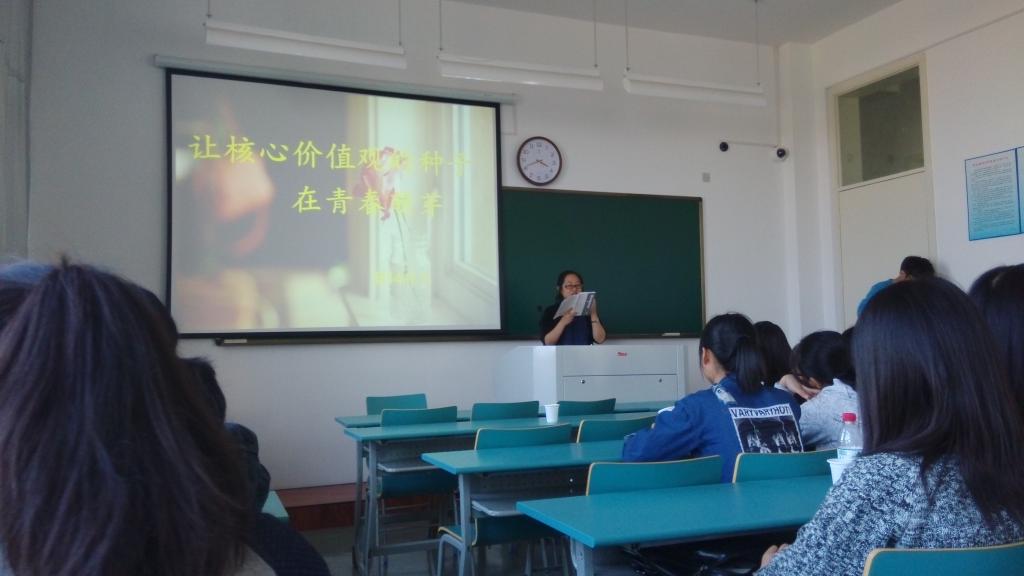 下午八九两节课,在公共教学楼418教室,全体B14历史班同学以及班主任武峰老师共同组织并参加了以“让核心价值观的种子在青春萌芽”为主题的班会课。