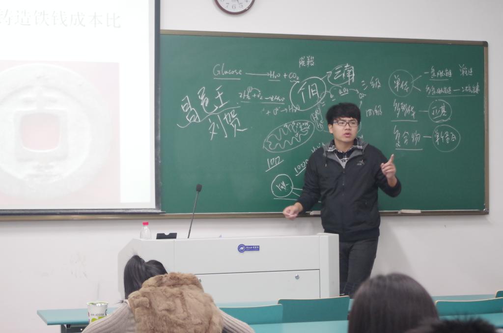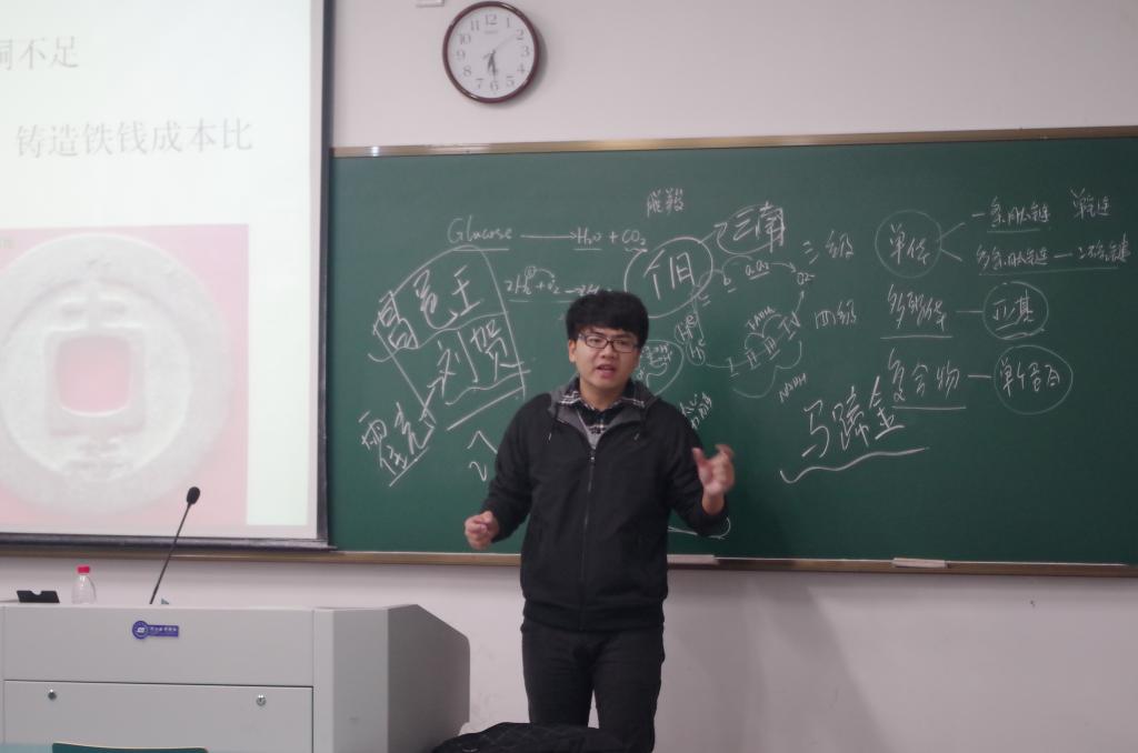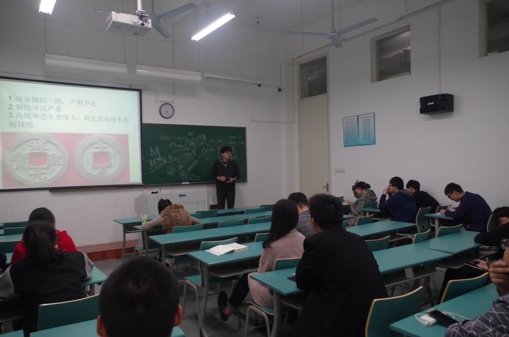 晚6时,人文学院15届毕业生洪佳铖在公共教室124上了《中国古代钱币鉴赏》一课,该课程主要是对他从事8年的中国古代钱币收藏进行经验总结与分享。这是洪佳铖老师本学期在浙江海洋学院开设的一门实用人文类选修课,也是他毕业从事工作之后,以教师的身份在母校授课。本次课程他向大家讲述的是《瘦金体—热门的北宋徽宗钱》。
