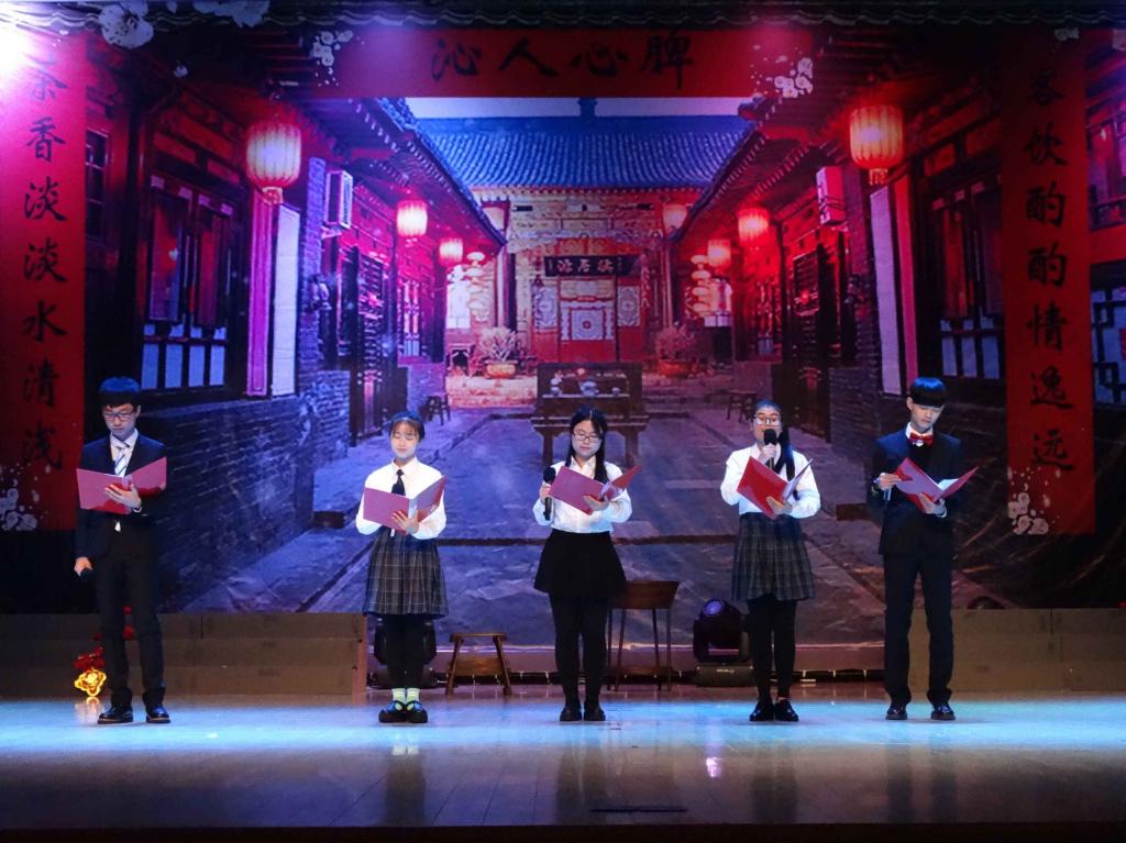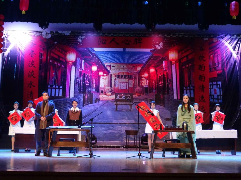 晚会开始,主持人身着旗袍、马褂等传统服饰出场,颇有民国茶馆的韵味。在主持人介绍完在场嘉宾后,人文学院王颖院长上台致新年辞,对人文学子寄语了新年的祝福与期望。
