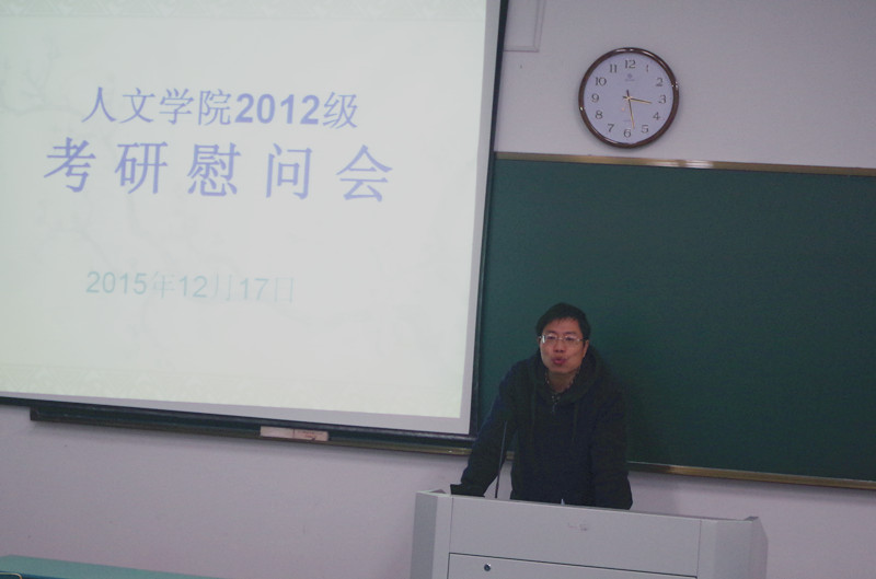 随着2016年全国研究生招生考试初试时间的临近,人文学院于12月17日下午3点在公共教学楼107教室召开了全院2012级考研慰问会,希望能鼓励考研学生在最后的冲刺阶段保持学习热情,坚定考研信念和决心。人文学院人文学院党委书记许金权,副院长杨光熙,历史系