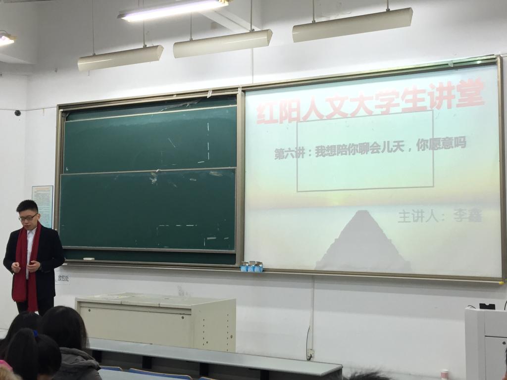 晚18点,人文学院红阳人文大讲堂第六讲在定海校区2区130教室举行。本次讲座的主讲人为浙江海洋学院在读研究生李鑫学长,人文学院全体大一同学聆听本次讲座。