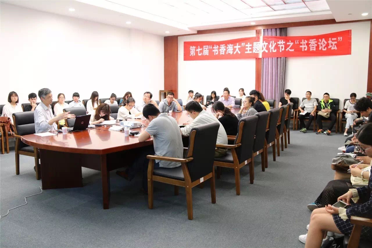 14:00在图书馆417开展了第七届“书香海大”主题文化节之书香论坛活动。本次活动特别邀请永利集团官网原校党委书记周克非作为主讲人,向大家分享他的阅读心得。人文学院党委书记许金权、思政部