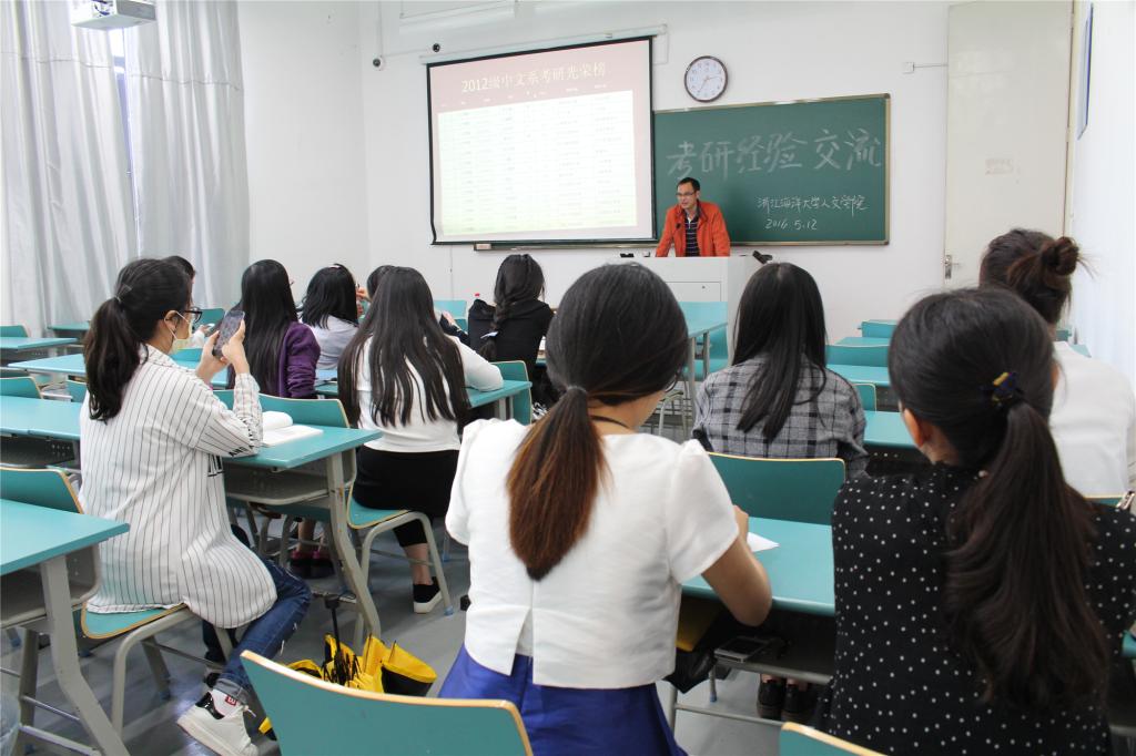 下午14:30,人文学院历史系、中文系考研交流会分别在公共教学楼107、109举行。召开考研交流会,意在共享考研经验,为更多有志向考研的同学提供一个更好的交流平台。历史系冯定雄老师、中文系闵泽平老师、今年成功考上研究生的毕业班同学以及有意考研的同学参加此次交流会,现场交流经验。