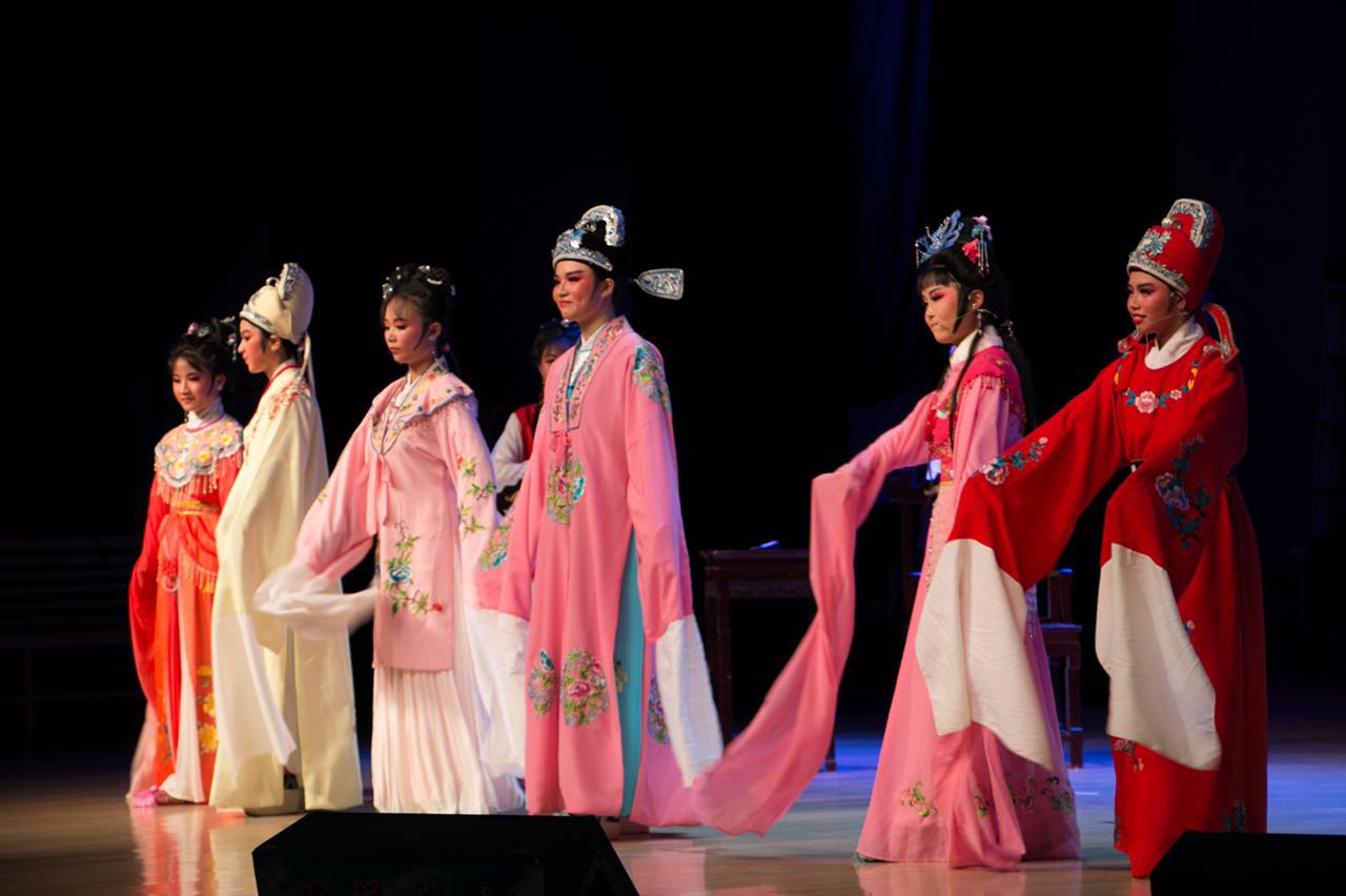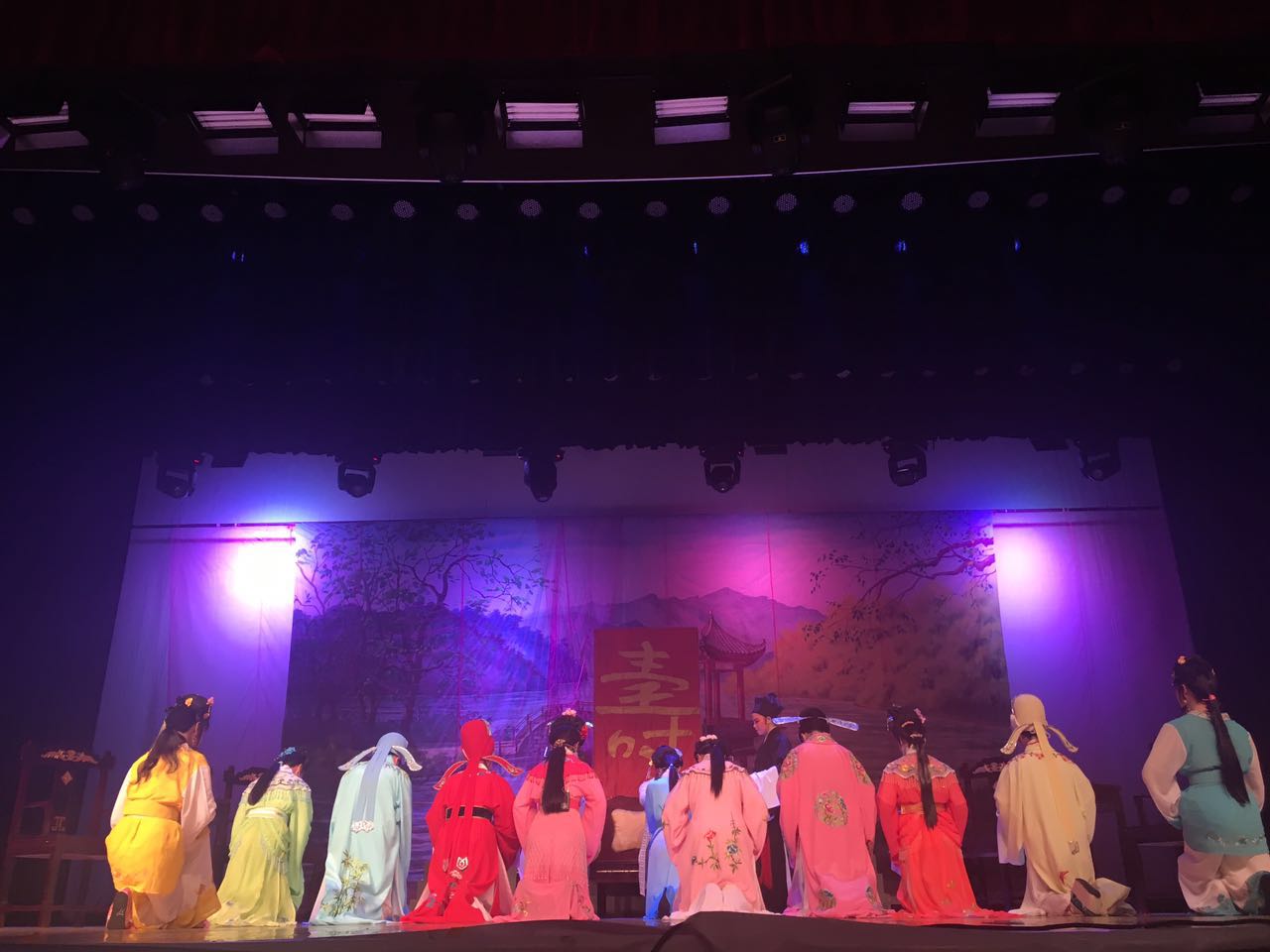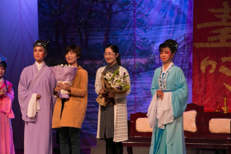 18:15分,青衣戏曲社十周年专场演出《五女拜寿》在杨存国一号报告厅圆满落幕,以纪念青衣戏曲社十年的发展和传承。校团委副书记姜伟老师,学校发展规划处、百川论坛主讲教师王建增老师,校美委于志新老师,人文学院辅导员傅林静老师,台州秋枫红艳戏曲社指导老师周易旭及其社员们到场观看。