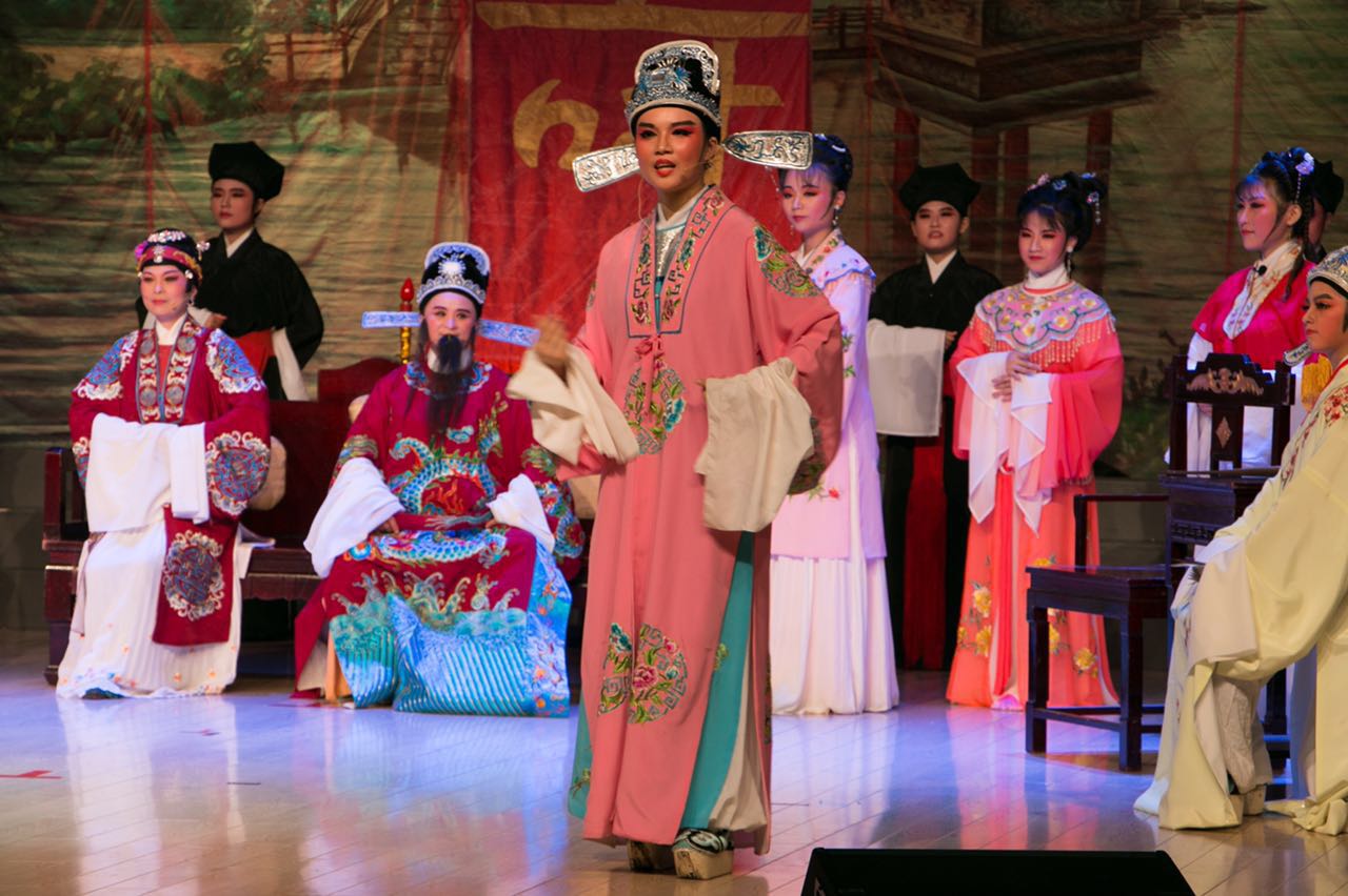 在简短的拜师仪式后,演出正式开始。演出曲目《五女拜寿》讲述了杨家三女和丈夫在拜寿时因礼薄受到冷遇被赶出杨府,却在之后收留了落难的杨老夫妇帮助杨家沉冤得雪的故事。其中生旦众多,行当齐全,而青衣戏曲社的成员更是将其演绎得婉转飘逸,生动传神,博得了全场一阵又一阵的掌声,这是对青衣戏曲社成员们辛勤付出的肯定与赞赏。