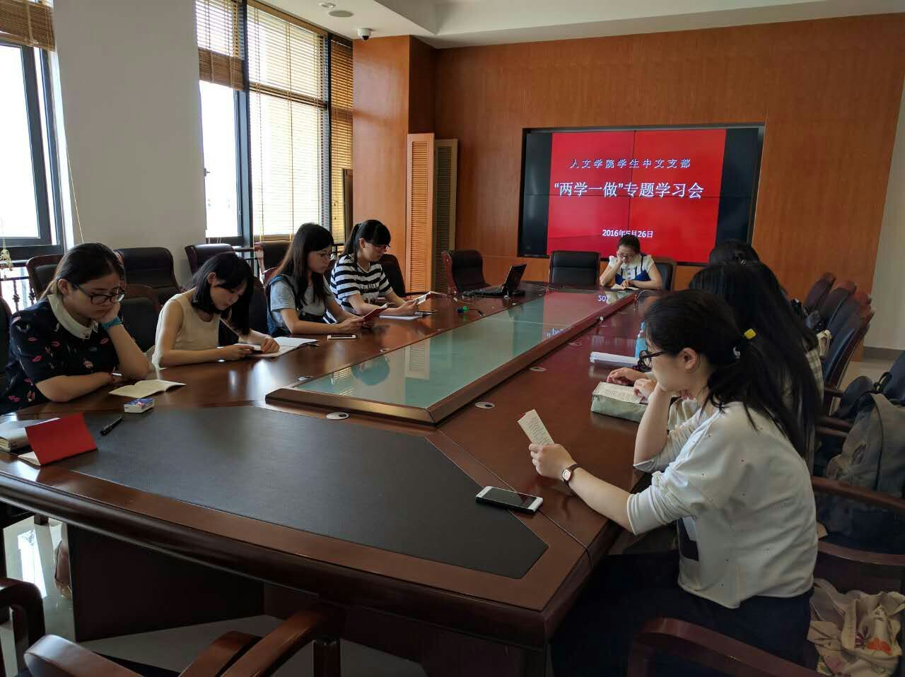 为了贯彻落实“两学一做”精神,切实加强校园党组织建设,深化党员同志对党章党规的学习,促进党员干部工作、生活作风的持续转变,6月1日,人文学院学生中文支部在文理楼418开展了“两学一做”专题学习会。会议由支部书记