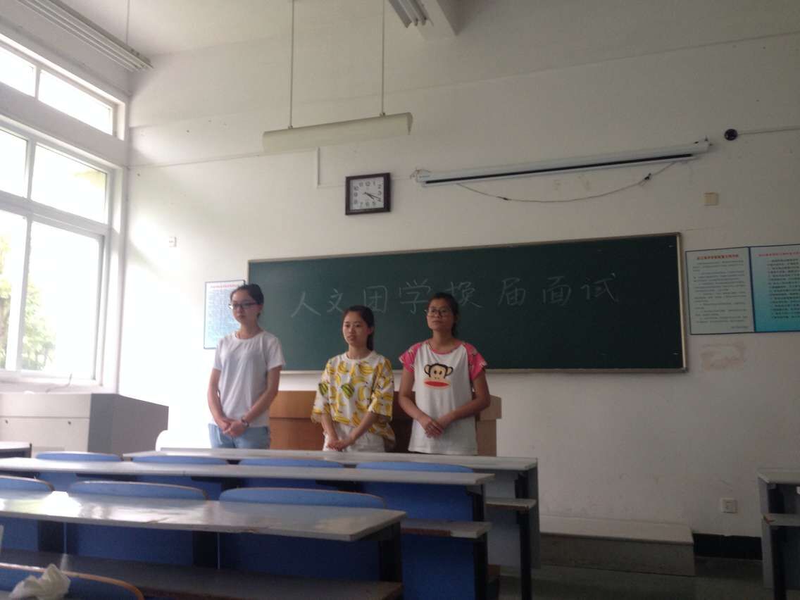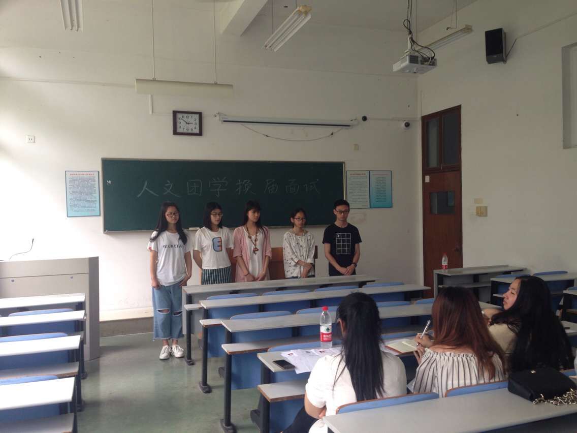 下午14:00,人文学院团学干部换届面试于定海校区166以及170教室举行。人文学院辅导员傅林静老师、原人文学院主席团、书记团干部担任本次面试的面试官。