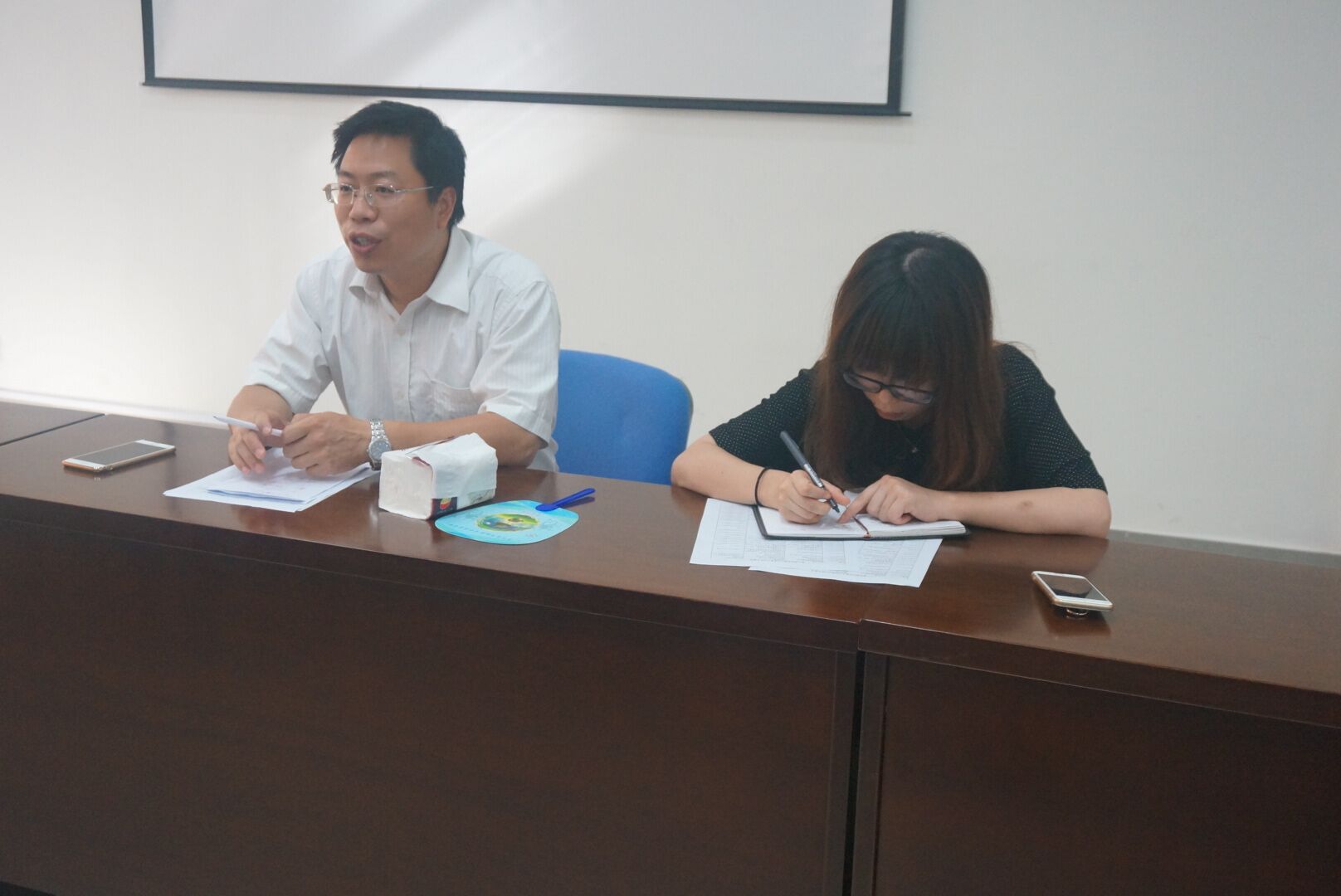 许书记首先从“管理”这一问题谈起,阐释了团学干部的职能与义务,强调要务实并希望每一个部门都凝聚成一个整体。接着,许书记浅谈了活动创新的重要性,也通过曾经任职的学生干部参与师范生技能比赛以及“职来职往”等活动时的突出表现,说明了团学是学生锻炼自我、提升能力的一大平台。而后,许书记又强调了学生干部的本职仍是学习,协调好学习与学生干部工作的关系极为重要。最后,许书记点明了纪律在团学这个大家庭中所起到的举足轻重的作用。许书记说道:“一支队伍要打胜仗,首先需要优良的作风。人文学院新届团学工作的顺利进行与集体的凝聚力有紧密的联系。”傅老师则对新学年人文学院学生发展服务中心的主要工作安排做了梳理并对学生发展服务中心各部门职能进行介绍、明确。傅老师也强调,团学工作需要相互合作,各部门之间都应相互配合。会议在各部门学生干部的自我介绍中结束。
