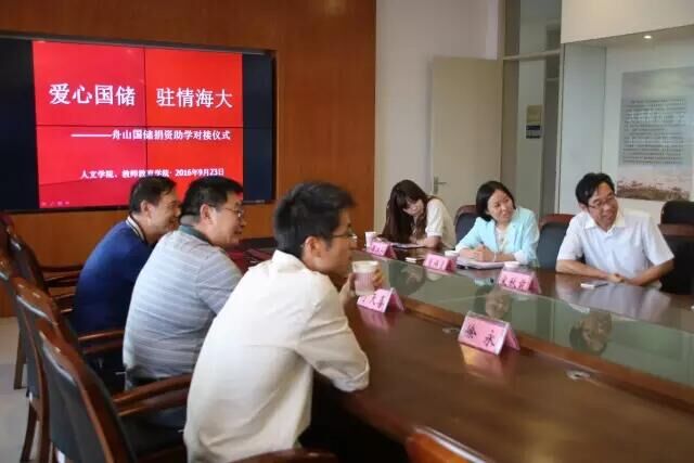 9月23日下午四点,人文学院、教师教育学院“舟山国储捐资助学对接仪式”在文理楼418会议室准时召开。舟山国储公司党委副书记于天喜、副部长王永年、党群主管徐永,永利集团官网人文学院、教师教育学院党委书记宋秋前、党委副书记张祎星、辅导员傅林静以及三位接受助学的同学出席本次对接仪式。