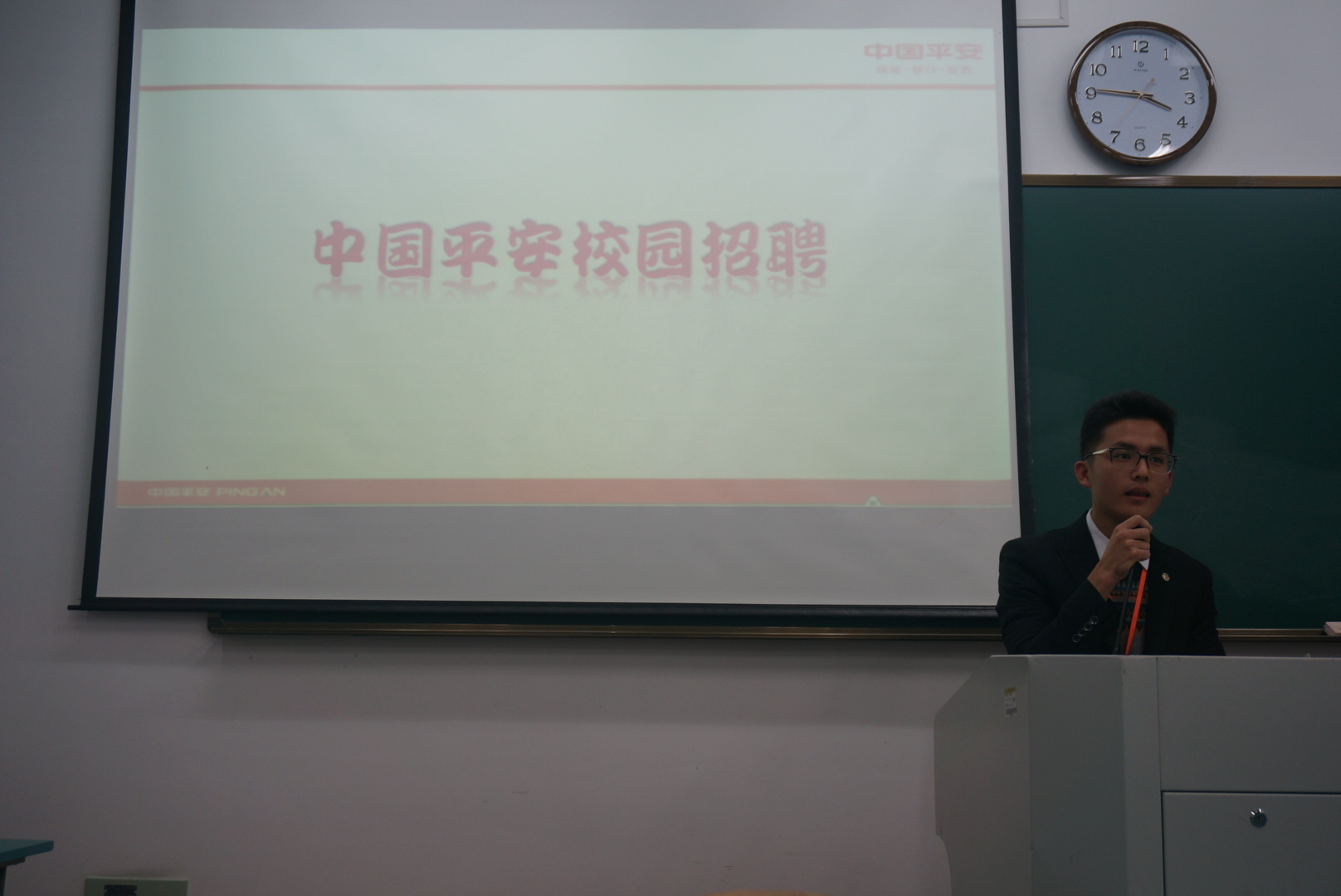 最后,业务主任陈妮向大家更加深入地介绍了平安公司未来的规划。她从同学们生活中的各个方面切入,说明了保险行业与大家密切相关。同时,她也向在场对该领域有兴趣的同学们抛出了橄榄枝。