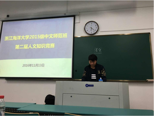 在班会后半阶段,在班主任的主持下,开展了紧张而激烈的班级第二届人文知识竞赛。同学们竞答人文常识,诵读经典诗词,看图猜人物名字,气氛异常活跃,不觉中获取了知识。结束之后,班主任给得分前十位的同学颁发了奖品。班会在欢声笑语中进入尾声。