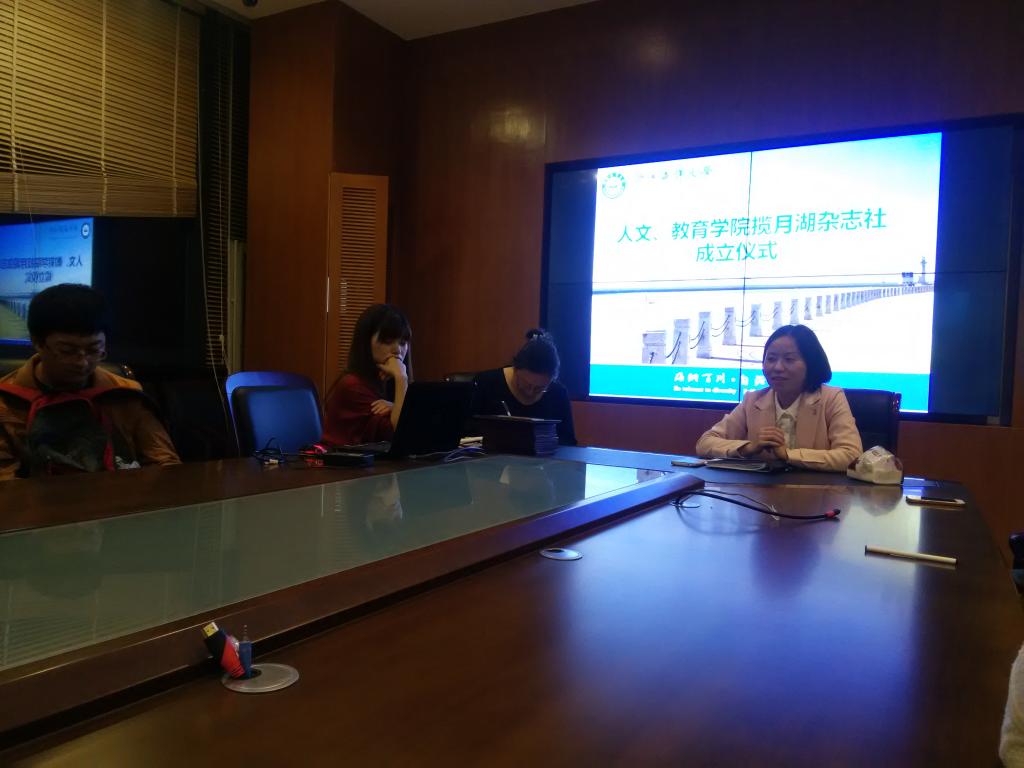 11月18日晚6:30,人文、教育学院揽月湖杂志社成立仪式在文理楼418顺利举行。人文、教育学院党委副书记张祎星,马克思主义学院副教授华海坤,人文、教育学院学工办主任曹虹,团委副书记傅林静以及揽月湖杂志社全体成员出席成立仪式。