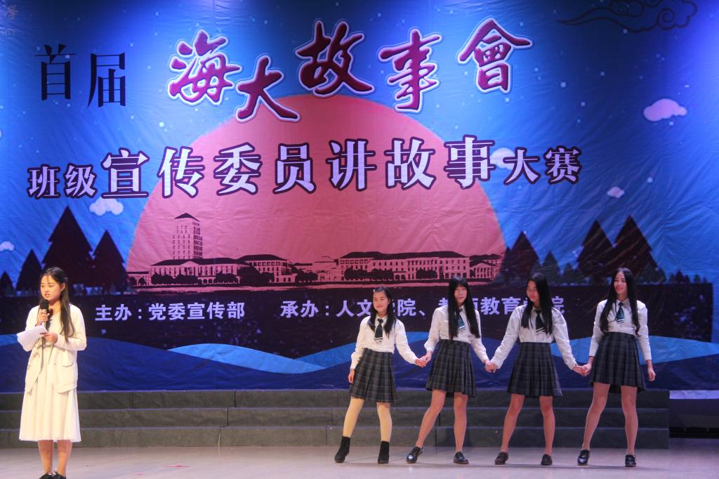 宣誓结束后,“海大故事会”正式开始,十位选手讲述了属于他们班级的感人故事。水产学院的金凡力以《他的石蛙》向观众们讲述了学长致力于石蛙水产研究的故事,其中的探索与坚持不但触动人心,也激人奋进。人文、教育学院的张路以青春之名,介绍了B15中文班一群可爱上进的女孩们的故事,她们活跃在修习学业,各项文体活动以及公益志愿服务活动中,给观众留下深刻印象。外国语学院的冯丽加用温暖的话语,将班级同学们的志愿故事娓娓道来,志愿者们在海岛国际旅游大会和国际自行车大赛担当志愿者时的无私奉献使台下的观众为之动容。选手们各尽其能,题材、表现形式各异,为我们讲述了一个又一个动人的海大故事。选手表演结束后,王鸳珍老师进行了点评,她表示此次“海大故事会”充分展现了90后的精神风貌,选手们都很用心地准备,情景剧、VCR等多种表现形式的运用也为大家带来了惊喜。