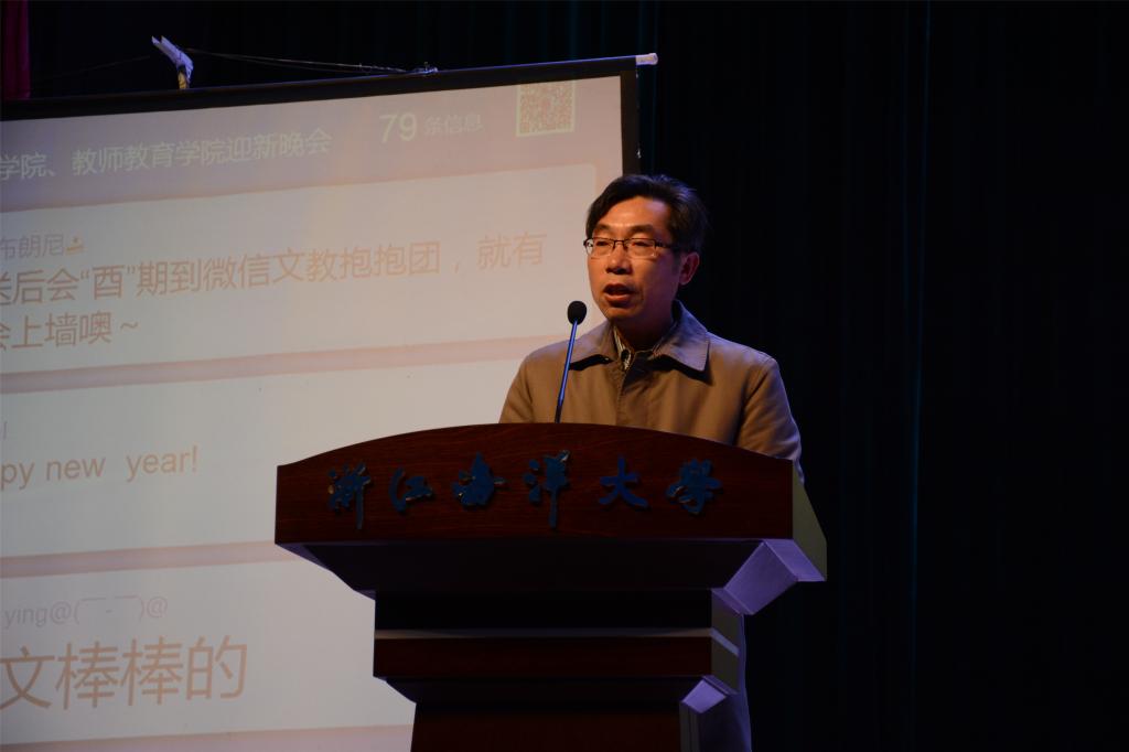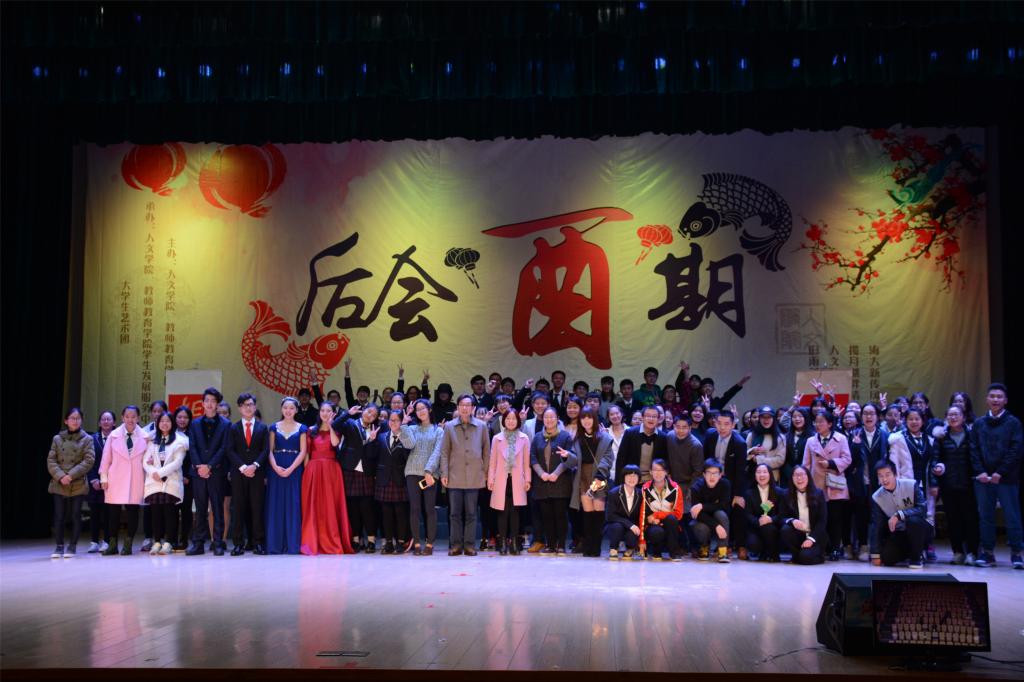 12月10日晚六点半,人文、教育学院2017年“后会‘酉’期”迎新晚会在杨存国一号厅圆满落幕。人文、教育学院党委书记宋秋前,党委副书记张祎星,学工办主任曹虹,办公室副主任何青晏,教学秘书王潇音,团委副书记傅林静,历史系教师韩翔,新生班主任黄家庭、袁秋实、李春林,东海发展研究院研究员楼正豪等老师受邀出席。