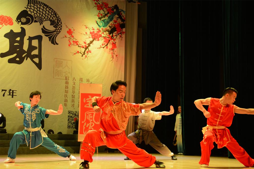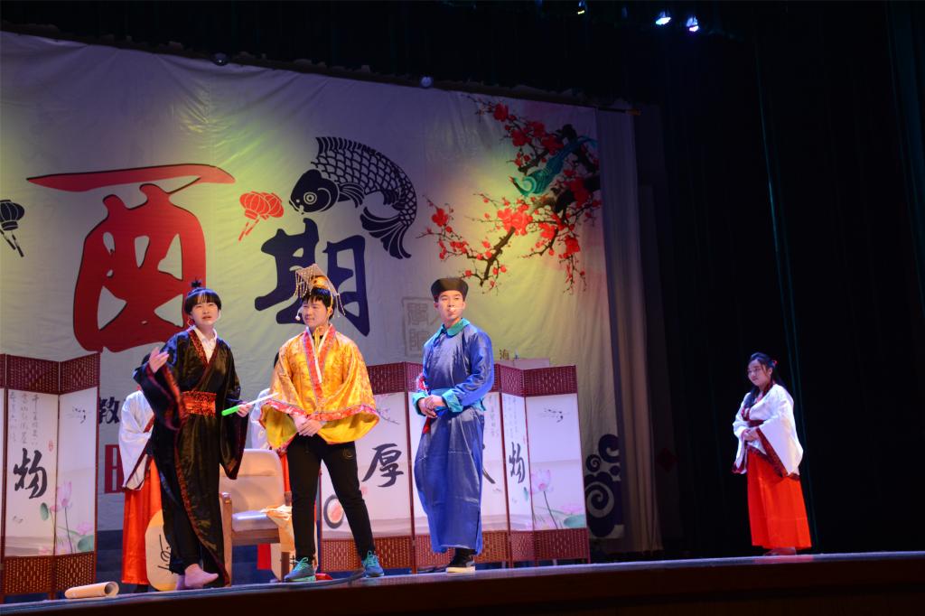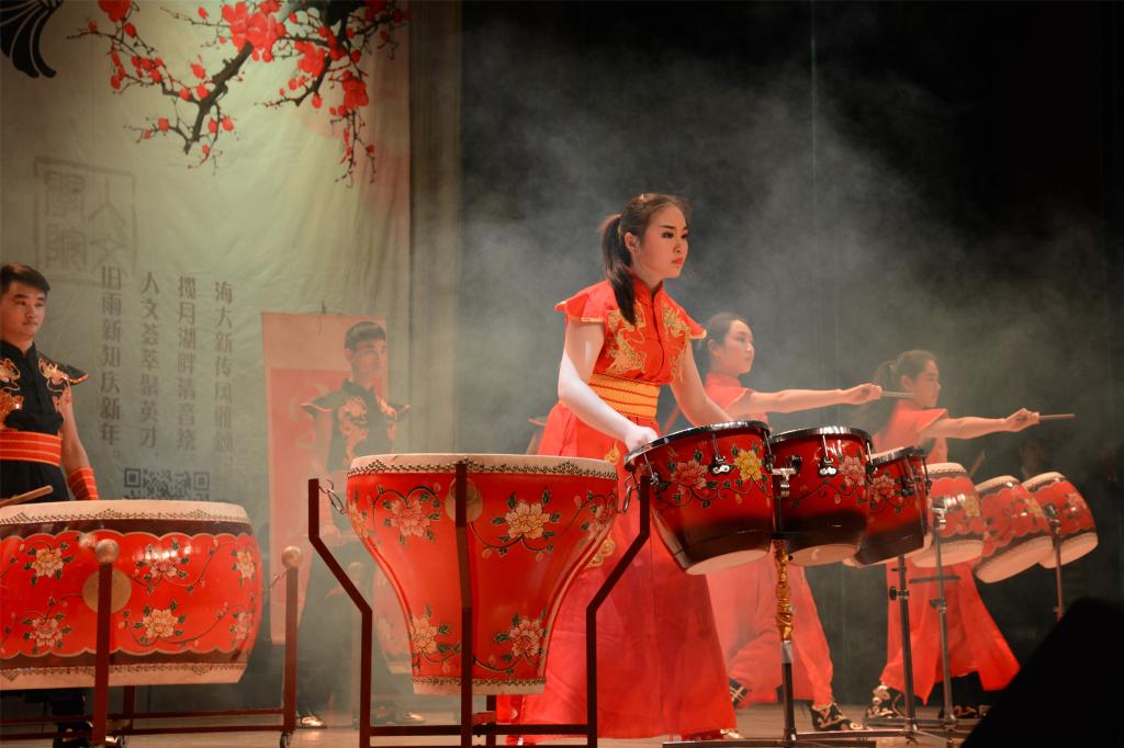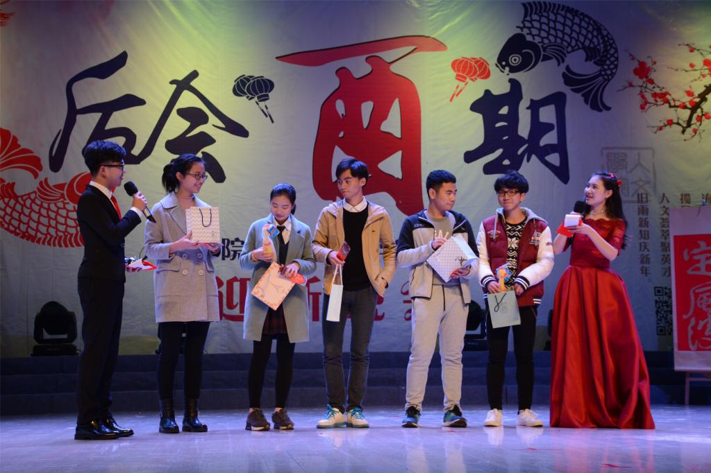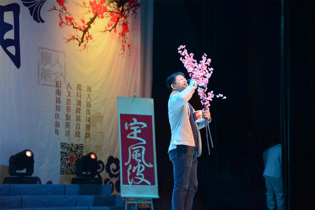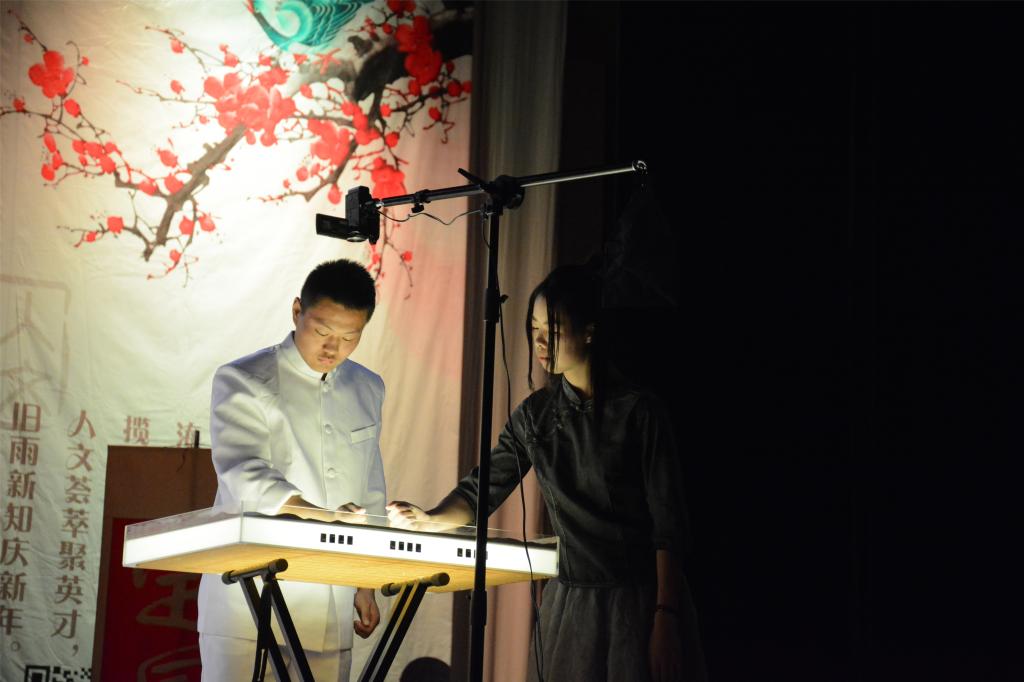 晚会伊始,宋秋前书记致辞,他对人文、教育学院一年的工作及取得的成绩进行总结并对大家给予了新年的祝愿与期许。本场晚会的节目分为豪放派与婉约派两大派别,新颖的划分方式为节目的呈现增添了趣味。晚会表演在锣鼓队的表演《武鼓》中拉开帷幕,热闹非凡。婉约派的节目独具特色,邬行健的《故梦》余音绕梁;校舞蹈团的《呼吸》发人深省;B16小教班带来的节目《惊鸿舞》更是展现了我院学生的人文气质。豪放派的节目则别出心裁,留学生Angela Corner以一曲《Halo》惊艳四座;施紫娟等带来的诗朗诵《闪耀吧,青春的火光》热情激昂;袁秋实老师饱满激情的演唱了《向天再借五百年》使得全场沸腾。精彩的节目接连不断,赢得阵阵掌声。互动环节也是热闹非凡,一碗碗热腾腾的饺子、汤圆无不增添了年味儿,用家乡话送祝福赢糖葫芦的环节更是将现场气氛再次点燃。最后,全场合唱《文教小幸运》,观众们自发点亮手机电筒随着节奏挥舞,形成的灯海温暖浪漫,为晚会画下完美句点。