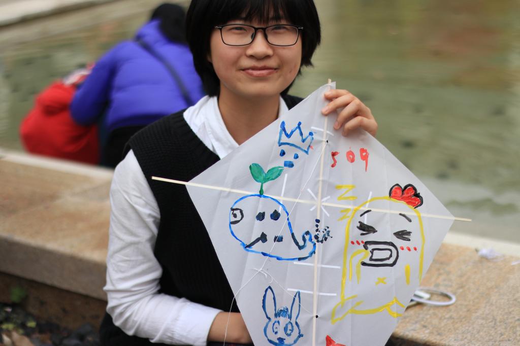 本次活动分为现场DIY风筝和放飞风筝两个环节,采取现场报名和网络报名的方式。活动现场,同学们结伴而来,市民们也都携亲朋好友纷纷前来共享这一场“揽风盛宴”。在工作人员的引导下,大朋友、小朋友们在文津广场组装、手绘风筝,体验风筝的制作过程,将自己喜欢的图案绘制在风筝上。绘制完成后,大家在工作人员的带领下前往揽月湖畔放飞风筝。恰逢微风习习,市民与同学们成群结伴带着风筝放飞,不时传来阵阵欢声笑语。揽月湖的上空,一只只风筝随风曼舞,形状各异,小巧精美。“我很喜欢放风筝,但这是我第一次亲手制作风筝”这是今年7周岁的卢萧奕小朋友第一次和爸爸妈妈一起参加活动。“虽然制作过程简单,但自己做的感觉不一样。和小伙伴一起画画、放风筝,让我想起了童年时光。”这是今年在海大念大二的同学第一次亲手制作风筝。