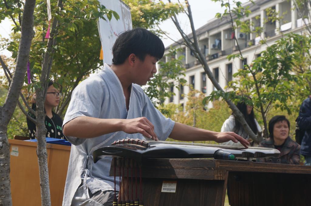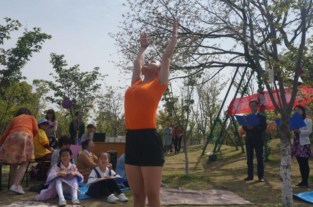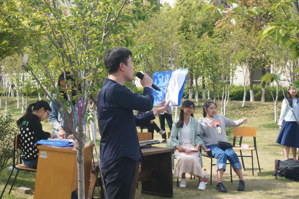 活动伊始,人文学院、教师教育学院党委副书记张祎星致辞,她对我院清风诗社的发展给予肯定,并对樱花诗会的举办表示支持与祝愿。诗会分为四个篇章:春天、海洋、花赋、锦绣。内容形式多样,主要以诗歌朗诵为主,兼有古琴、瑜伽、笛曲、葫芦丝、歌曲表演等。其中,作协的颜珊珍女士以她轻柔温和、将似水般的朗诵将《春到江南》展现地淋漓尽致。由作协的侯宏琦和何伊娜两位老师一起演绎的《在春天,倾听一种声音》则激情昂扬,也透漏着春的美妙。阳光明媚,春色正好。诗会氛围轻松热闹,多种形式的朗诵演绎着一曲曲动人的篇章,在场的人无不沉醉其中,享受着诗歌朗诵的魅力。活动中的古琴、竹笛和歌曲等表演也为诗会增添了一抹亮色。