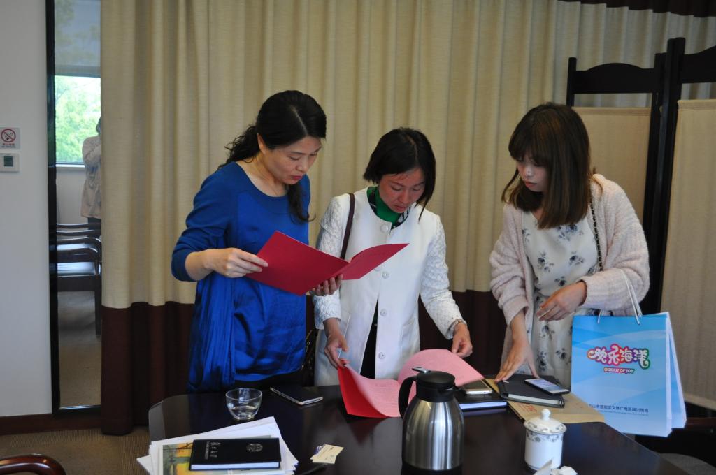 4月25日下午,人文、教育学院党委副书记张祎星、团委副书记傅林静一行2人,前往普陀区文体广电新闻出版局,就全面开展“双百双进”进行了深入的交流洽谈和具体的工作对接。参加本次会议的有普陀区文体广电新闻出版局局长蔡敏波、副局长乐波、普陀团区委副书记刘涛、文广局体育科科长戴颖、文化遗产科科长陈洁琼、文化馆馆长吕红军等。