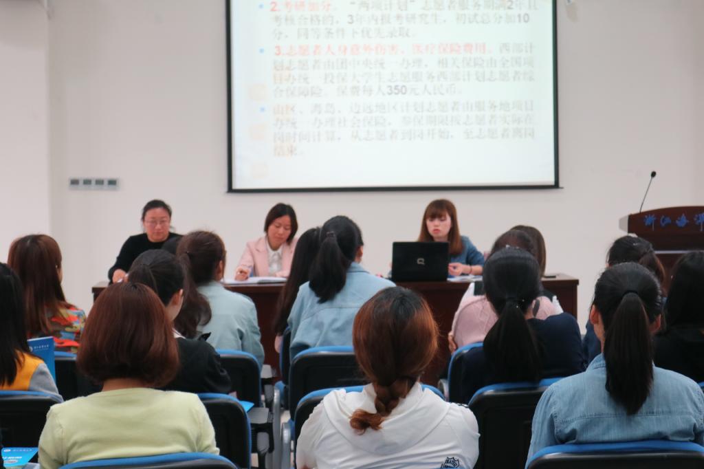 会议伊始,曹老师与傅老师分别就就业协议书、应聘协议书、就业奖励、户口迁移、毕业生档案、档案缓派以及党团组织关系的转接、两项计划等相关事宜做了详细的说明,并鼓励毕业生们志愿基层,积极服务西部以及欠发达地区。接着,张书记从回首过去、把握现在、展望未来三个角度为毕业生提出了三点建议。第一,回首过去,毕业生都应问问自己的初心,总结回顾自己大学四年的生活,从而在总结反思中走得更远;第二,把握现在,毕业生应调整好心态,注意人身安全、就业安全等问题,落实毕业季的相关工作,并科学地、合理地、灵活地规划毕业季的时间;第三,展望未来,毕业生们即将步入社会,开启新的人生旅程,我院陈晓辉、李彬彬等优秀校友的故事都激励着大家勇往直前,成为令母校引以为荣的学子。