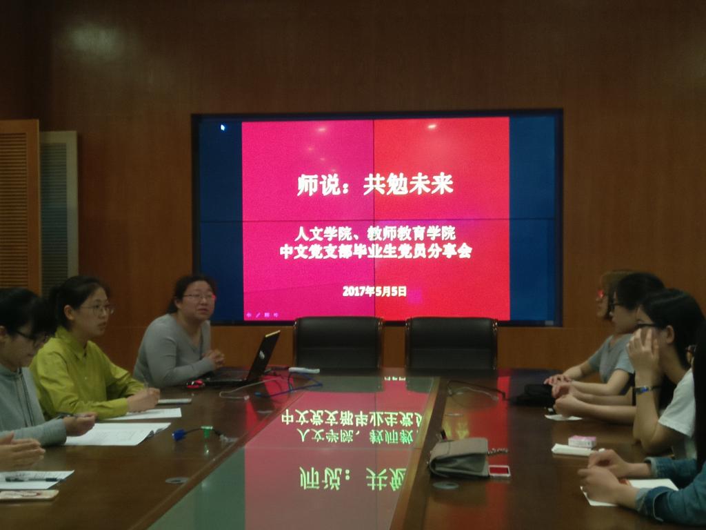 5月5日晚6点半,人文学院、教师教育学院学生中文党支部毕业生党员分享会于文理楼418会议室举办。本次分享会由学生中文党支部书记曹虹主持,学生中文党支部所有党员参会。